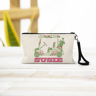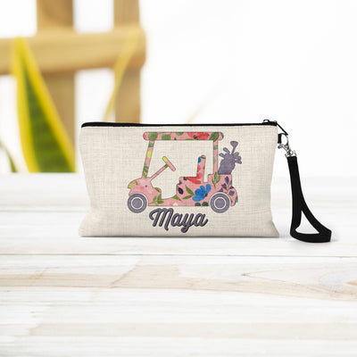 Personalized Golf Cart Linen Makeup Bag: Golf Lover Gift
