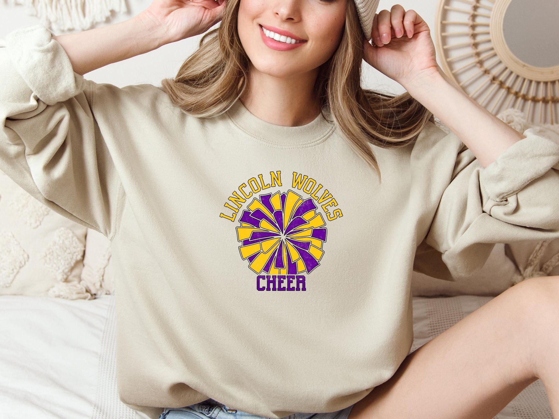 Show your spirit with this stylish Cheer Sweatshirt, perfect for game day and beyond! Whether you're a proud Cheer Mom, Cheerleader Mama, or looking for the ultimate cheerleader gift, this team spirit shirt is a must-have. Great for pep rallies, competitions, and everyday wear, this cheerleader sweatshirt doubles as a mascot shirt, team shirt, or custom school shirt. Add it to your school spirit shirts collection and cheer on your team in style—an ideal cheer gift for any fan!