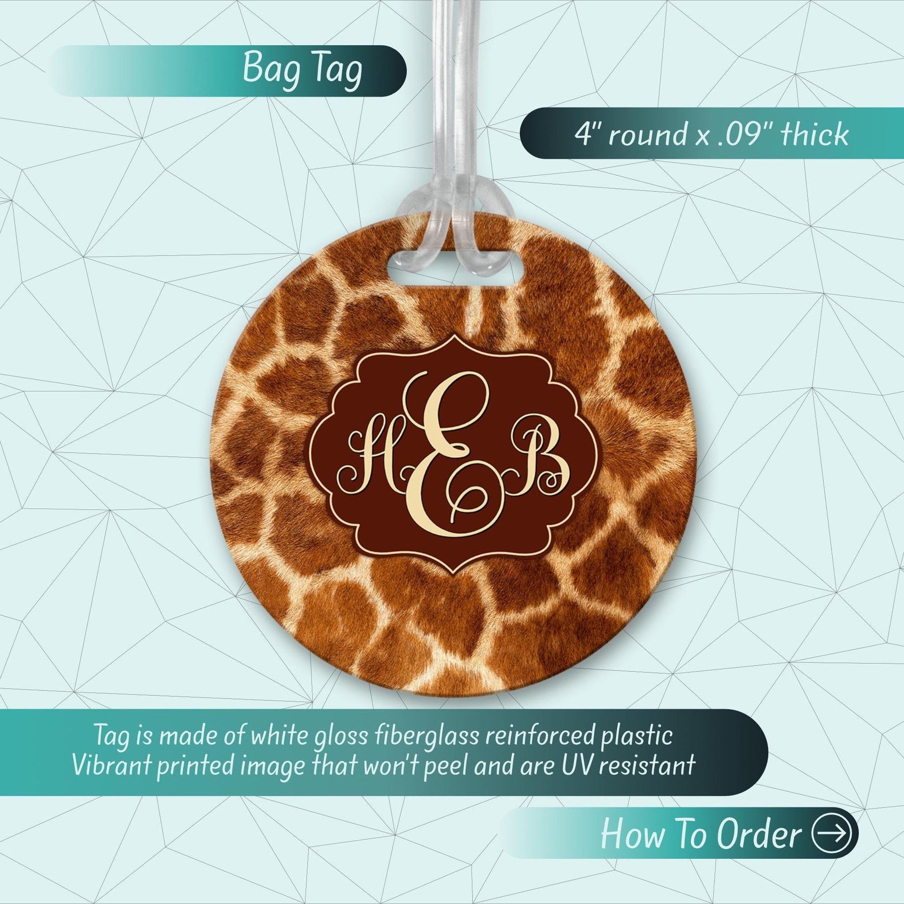 Stand out with this Giraffe Print Luggage Tag, the perfect Travel Accessory for any adventure! Whether for a Travel Bag, Bridesmaid Bag, or Backpack Tag, this Custom Luggage Tag adds a personal touch. Great as a Giraffe Gift or for a Girls Trip, it also works as a stylish Bag Tag or Name Tag. Perfect for identifying your Luggage Tags with ease, this fun and practical design makes traveling more unique. Personalize yours today!