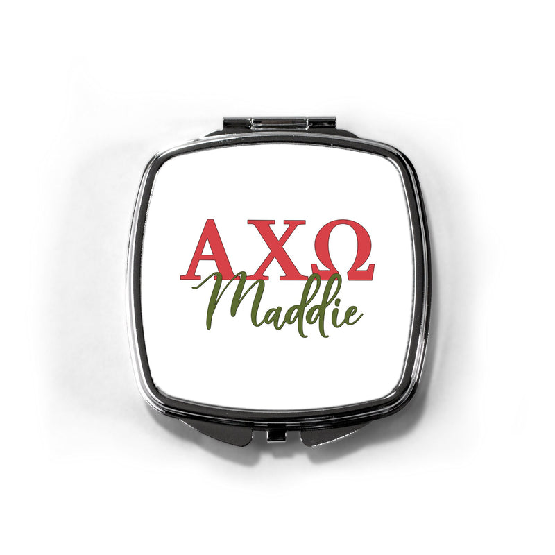 Alpha Chi Omega Sorority Pocket Mirror - Greek Letters Custom Makeup Compact