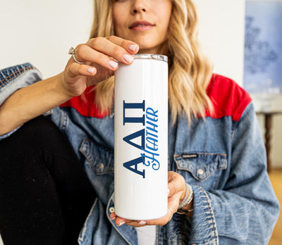 ["20oz Tumbler","Alpha Delta Pi","Big Little Gifts","Big Little Sorority","Custom Sorority","Greek Gifts","Personalized Tumbler","Skinny Tumbler","Sorority","Sorority Gift","Sorority Gifts","Sorority Letters","Sorority Merch"]