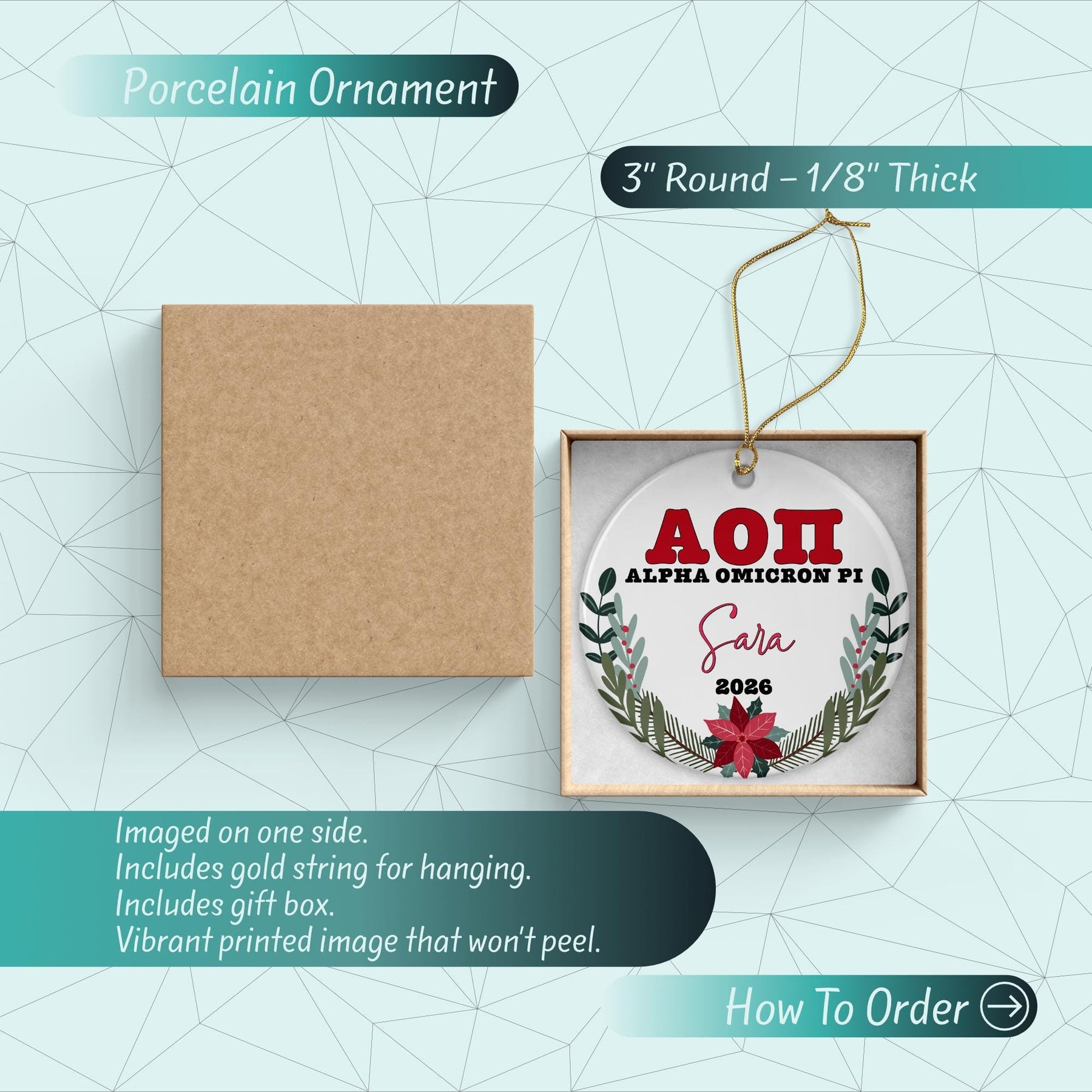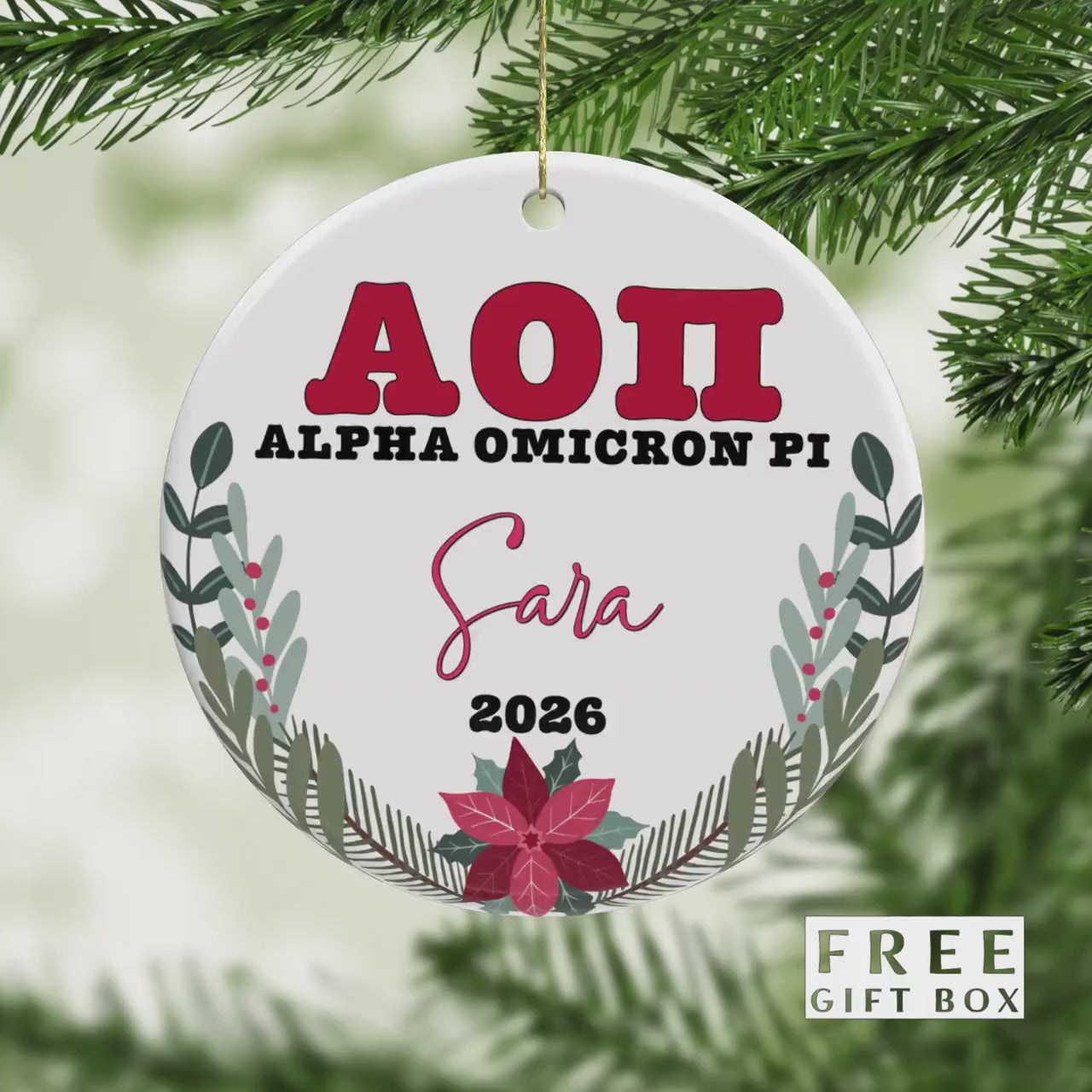 Alpha Omicron Pi Sorority Ornament: Custom College Merch for Big Little Sorority Gifts