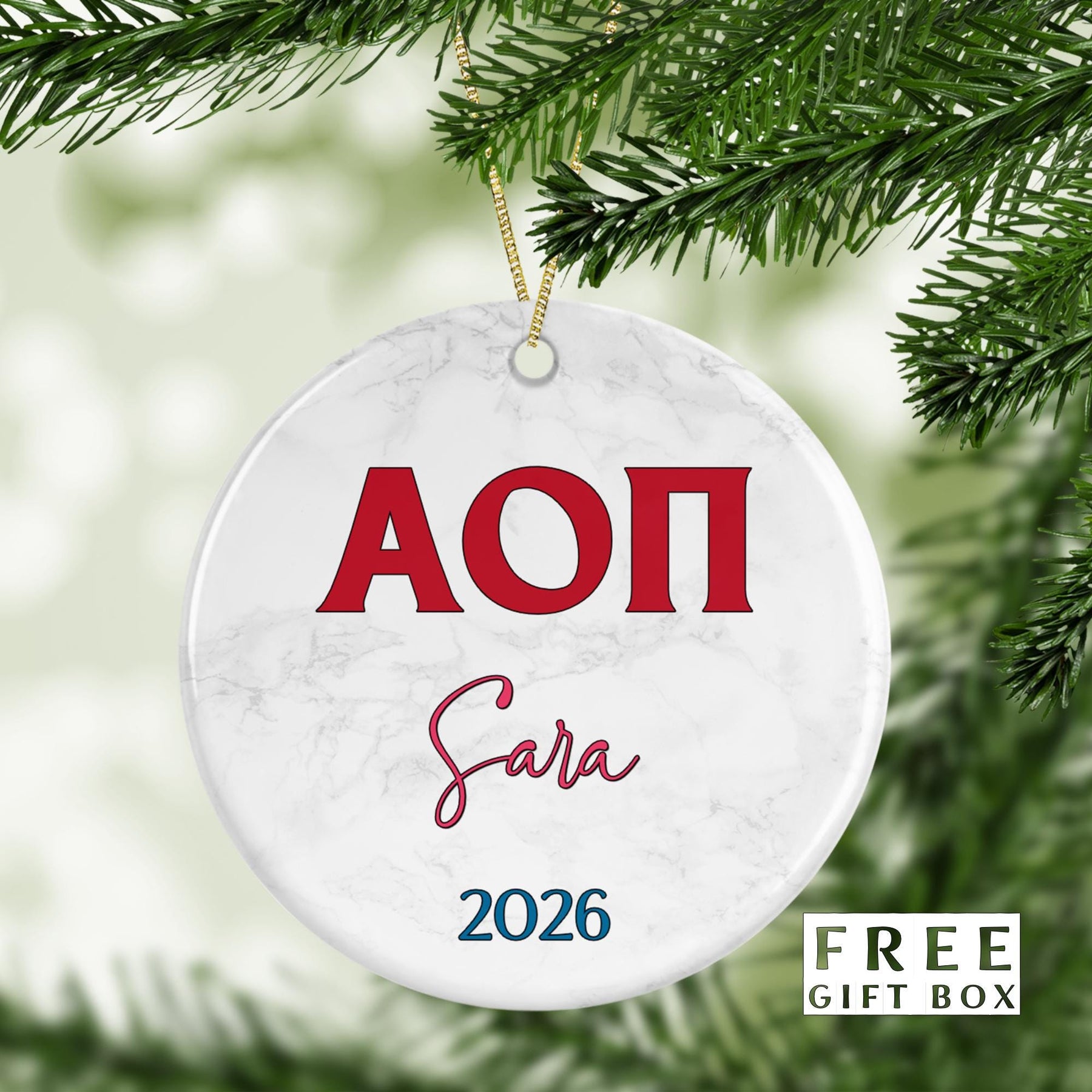 Alpha Omicron Pi Sorority Ornament: Custom College Merch for Big Little Sorority Gifts