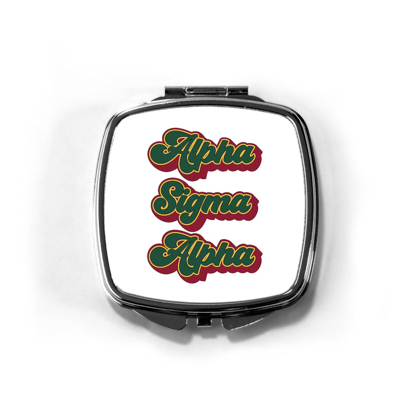 Alpha Sigma Alpha Sorority Pocket Mirror - Greek Letters Makeup Compact