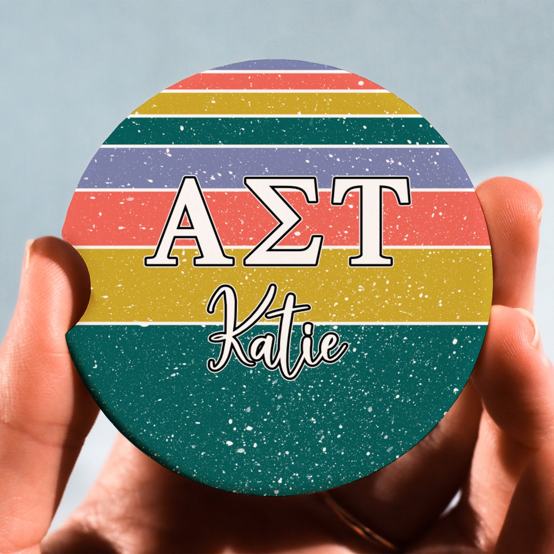 ["Alpha Sigma Tau","Big Little Sorority","Car Coasters","Car Decor","Coasters","Custom Sorority","Cute Car Accessories","Greek Gifts","Sorority","Sorority Gift","Sorority Gifts","Sorority Letters","Sorority Merch"]