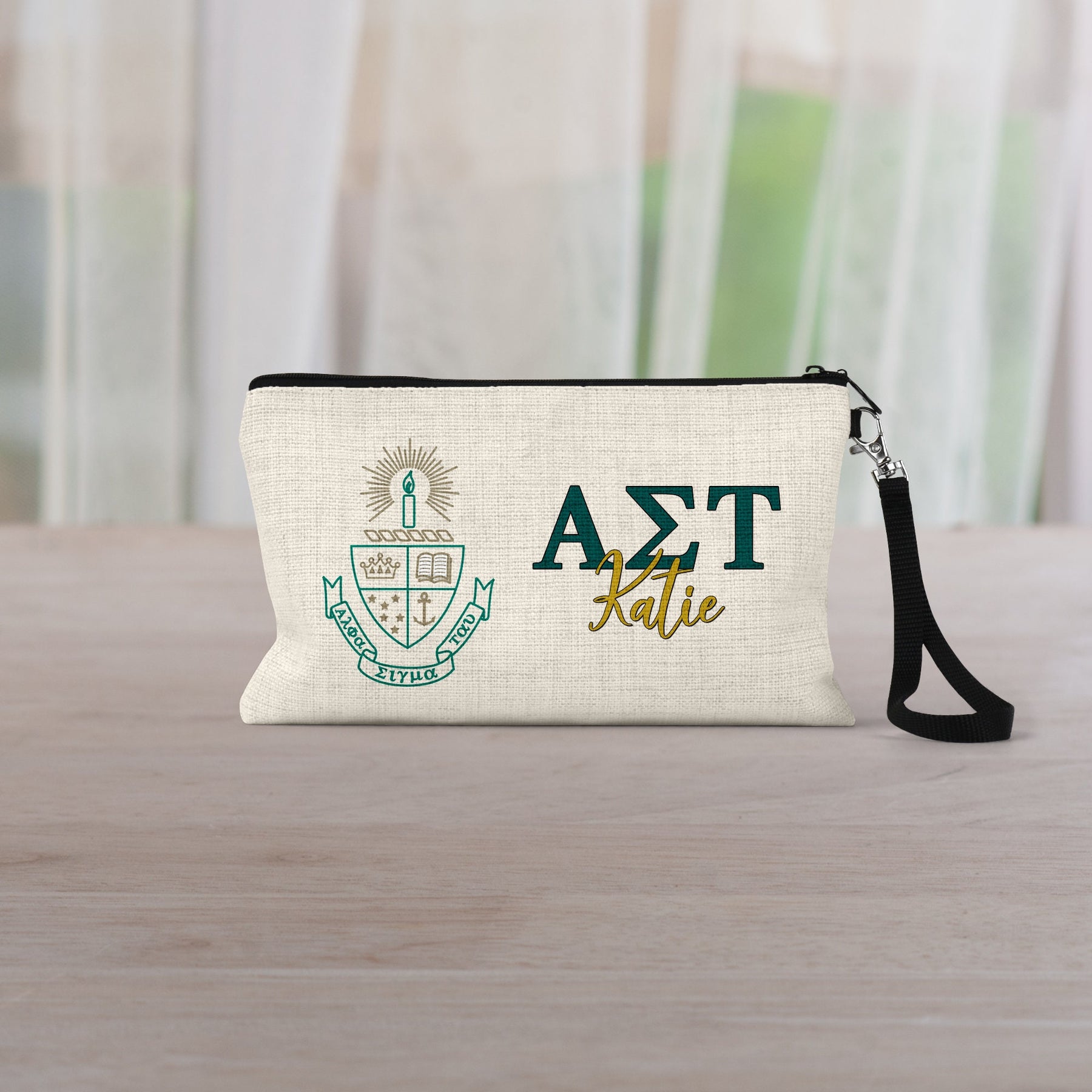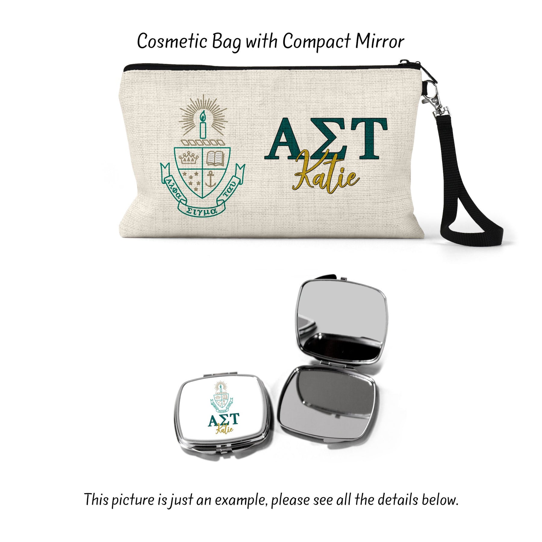 ["Alpha Sigma Tau","Big Little Sorority","Cosmetic Bag","Custom Makeup Bag","Custom Sorority","Greek Gifts","Make Up Bag","Makeup Bag","Sorority","Sorority Gift","Sorority Gifts","Sorority Letters","Sorority Merch"]