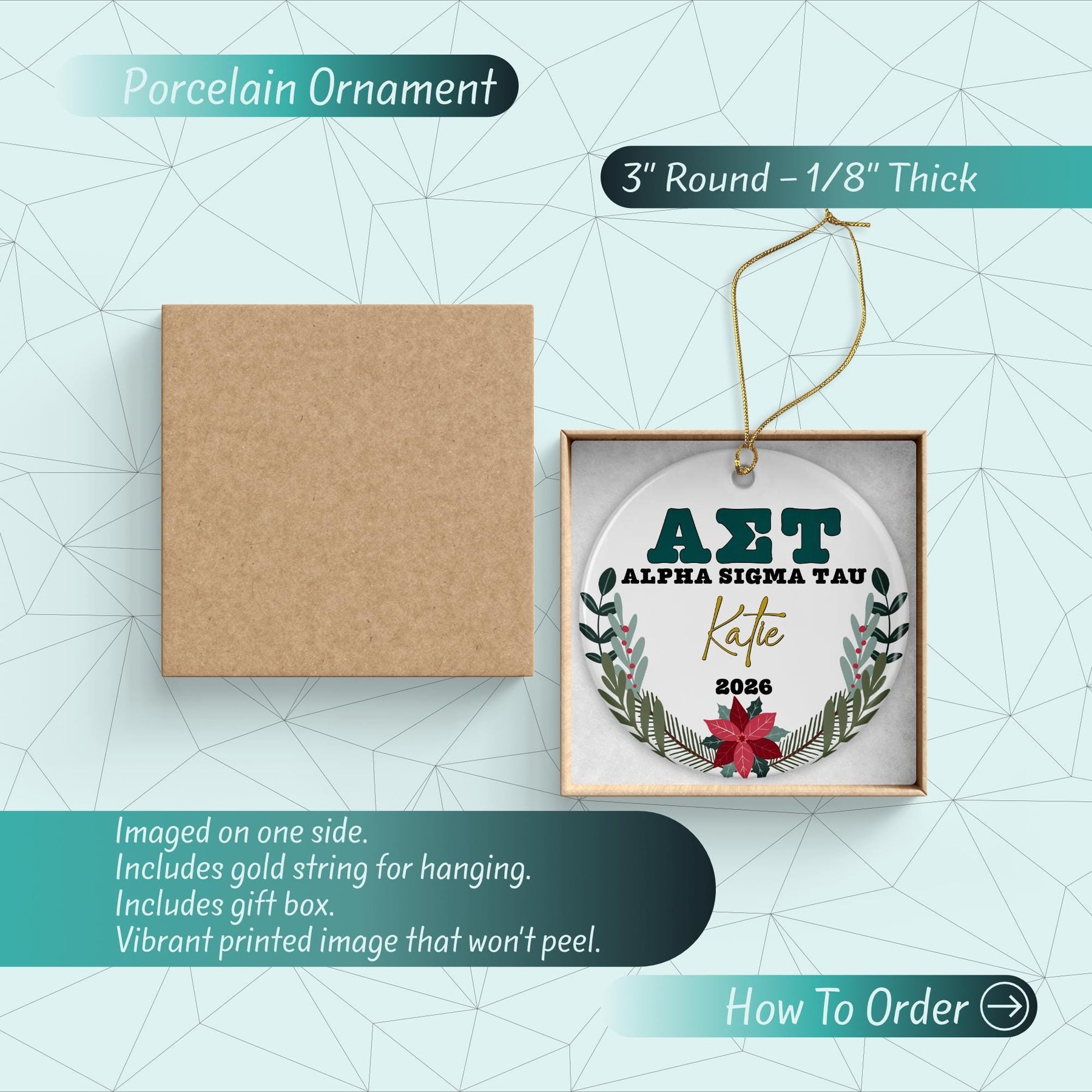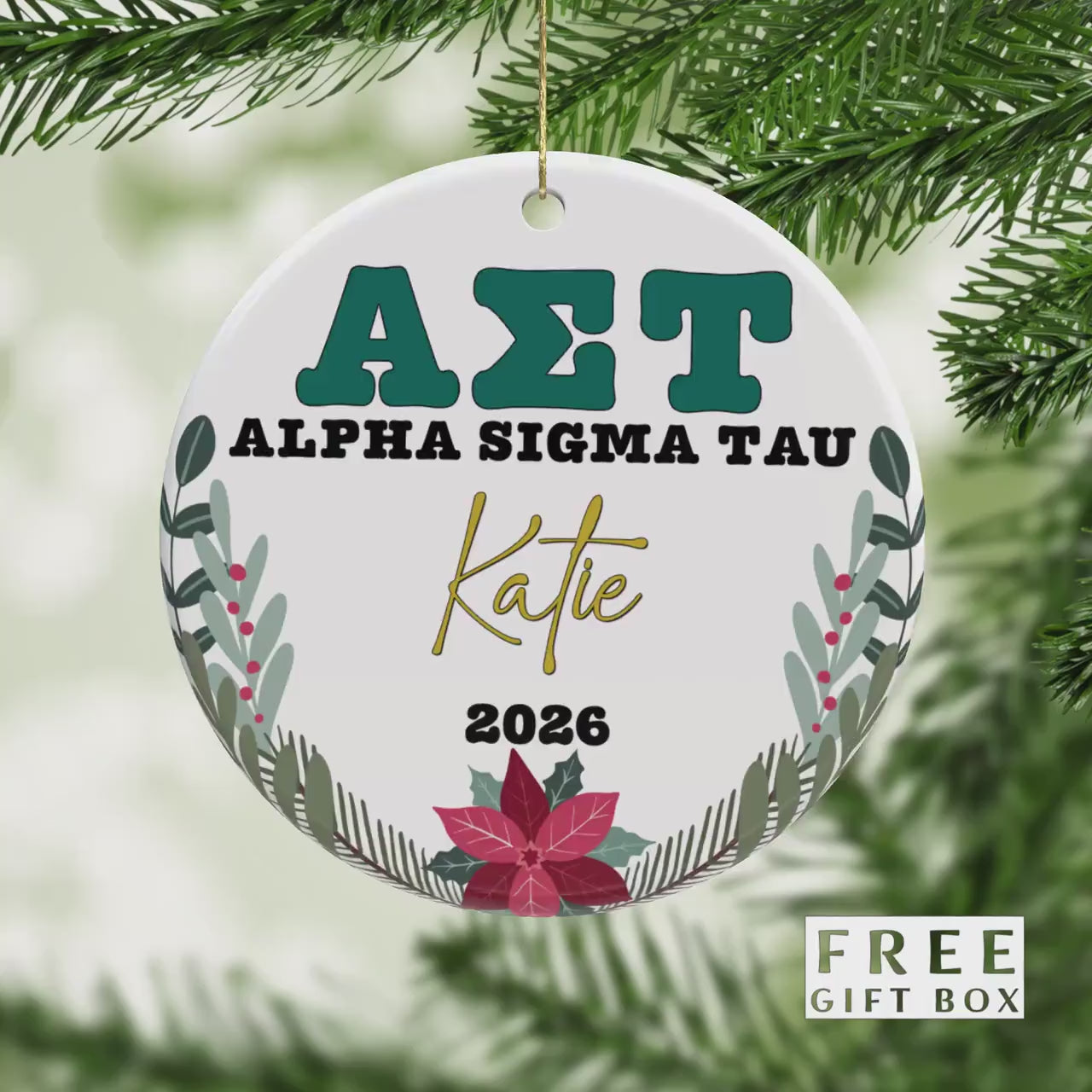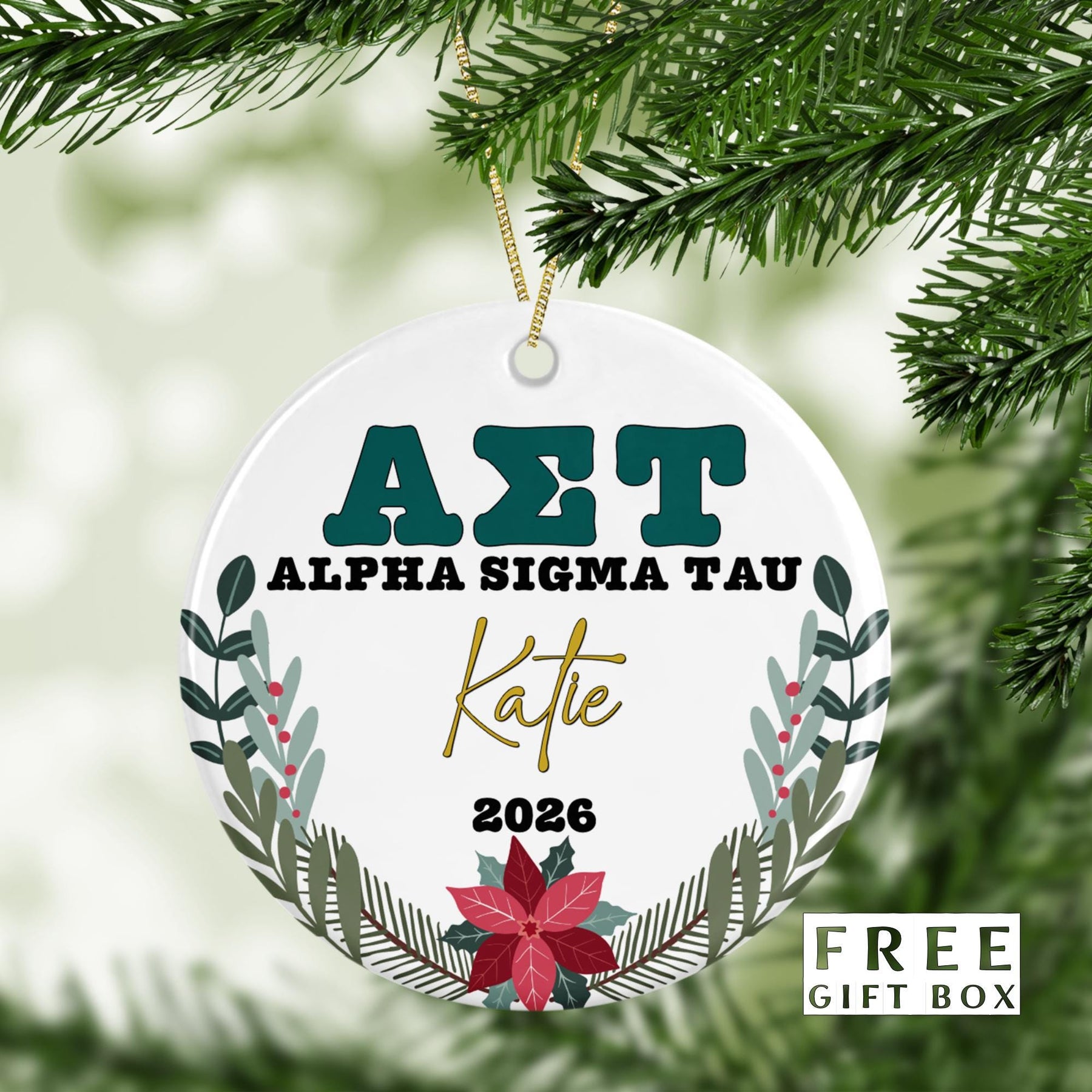 Alpha Sigma Tau Sorority Ornament: Custom College Merch for Big Little Sorority Gifts