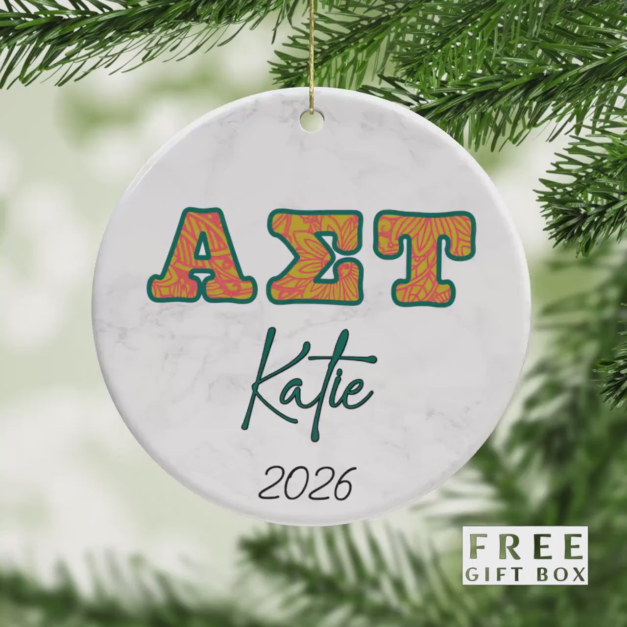 Alpha Sigma Tau Sorority Ornament: Custom College Merch for Big Little Sorority Gifts