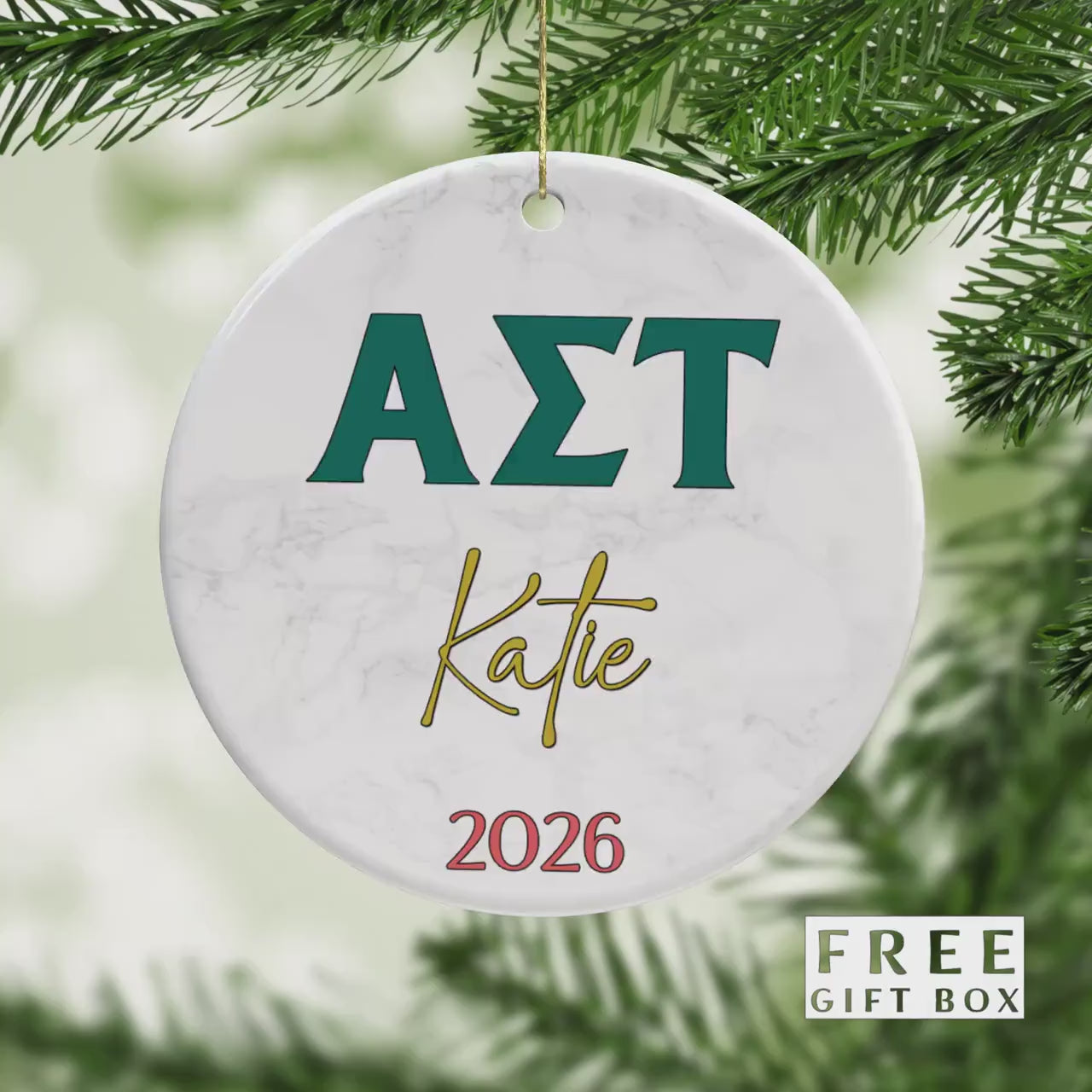 Alpha Sigma Tau Sorority Ornament: Custom College Merch for Big Little Sorority Gifts