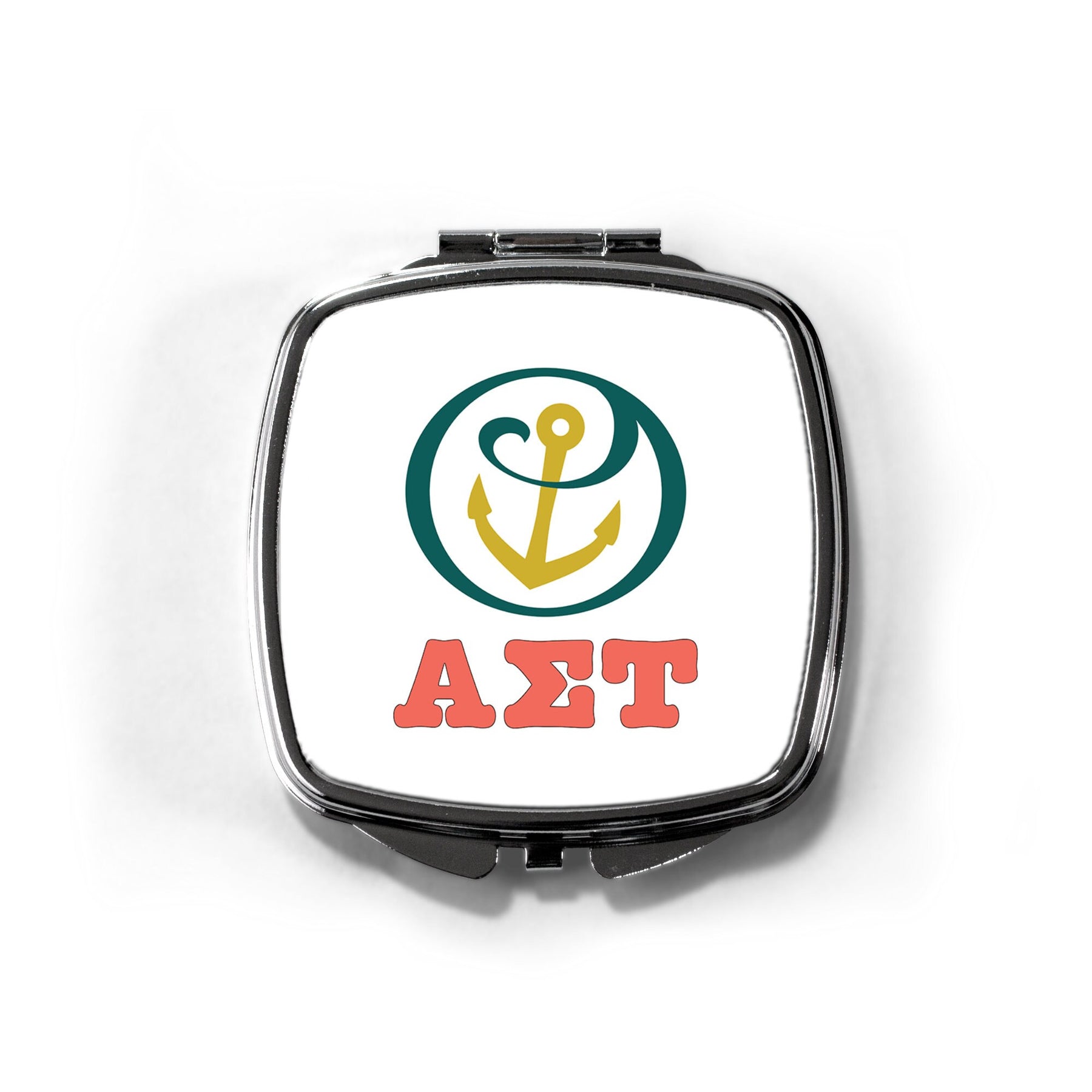 Alpha Sigma Tau Sorority Pocket Mirror - Greek Letters Makeup Compact