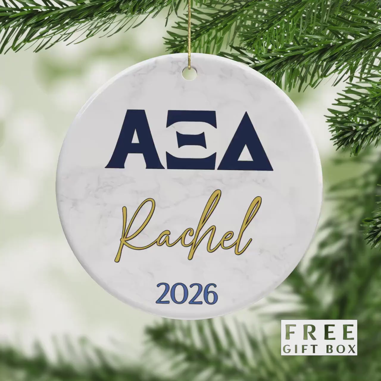 Alpha Xi Delta Sorority Ornament: Custom College Merch for Big Little Sorority Gifts