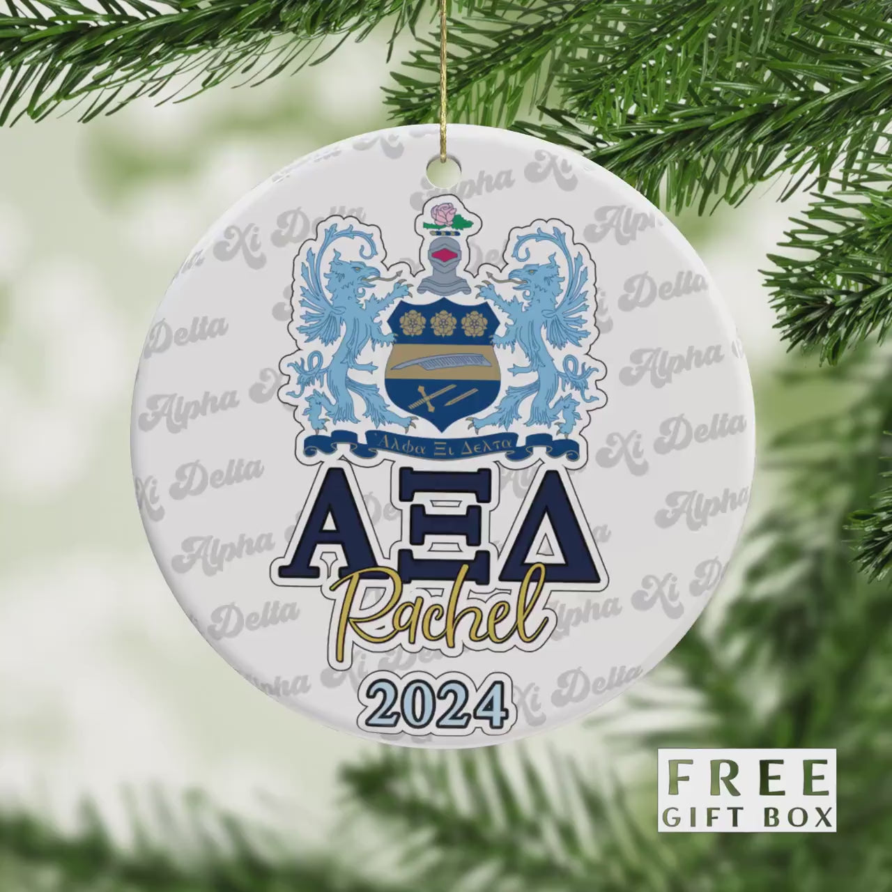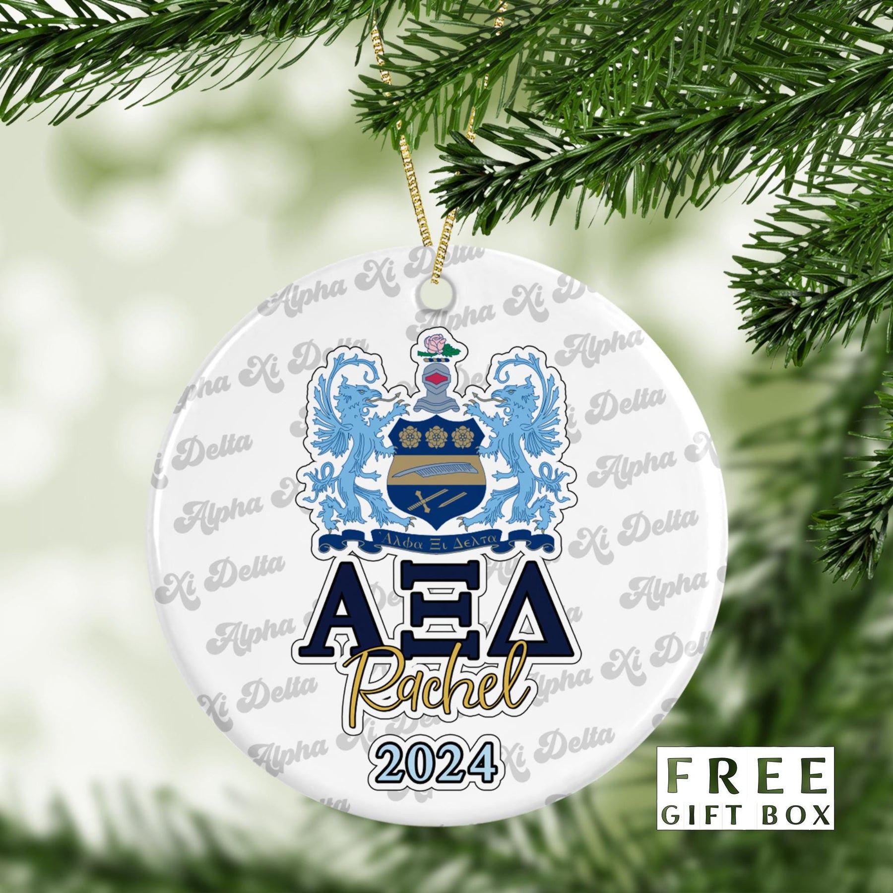 Alpha Xi Delta Sorority Ornament: Custom College Merch for Big Little Sorority Gifts