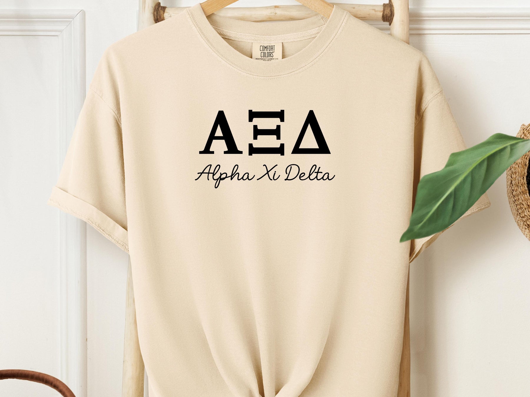 Show off your Alpha Xi Delta pride with this stylish sorority shirt! Perfect for Big Little reveal, this cozy college shirt is a must-have for sorority apparel lovers. Featuring classic sorority letters, it makes a great sorority gift for any member. Whether you're looking for Greek gifts, Big Little shirts, or trendy sorority merch, this custom sorority piece is the perfect addition to your wardrobe. Grab one today for yourself or surprise your Big or Little with a thoughtful gift!