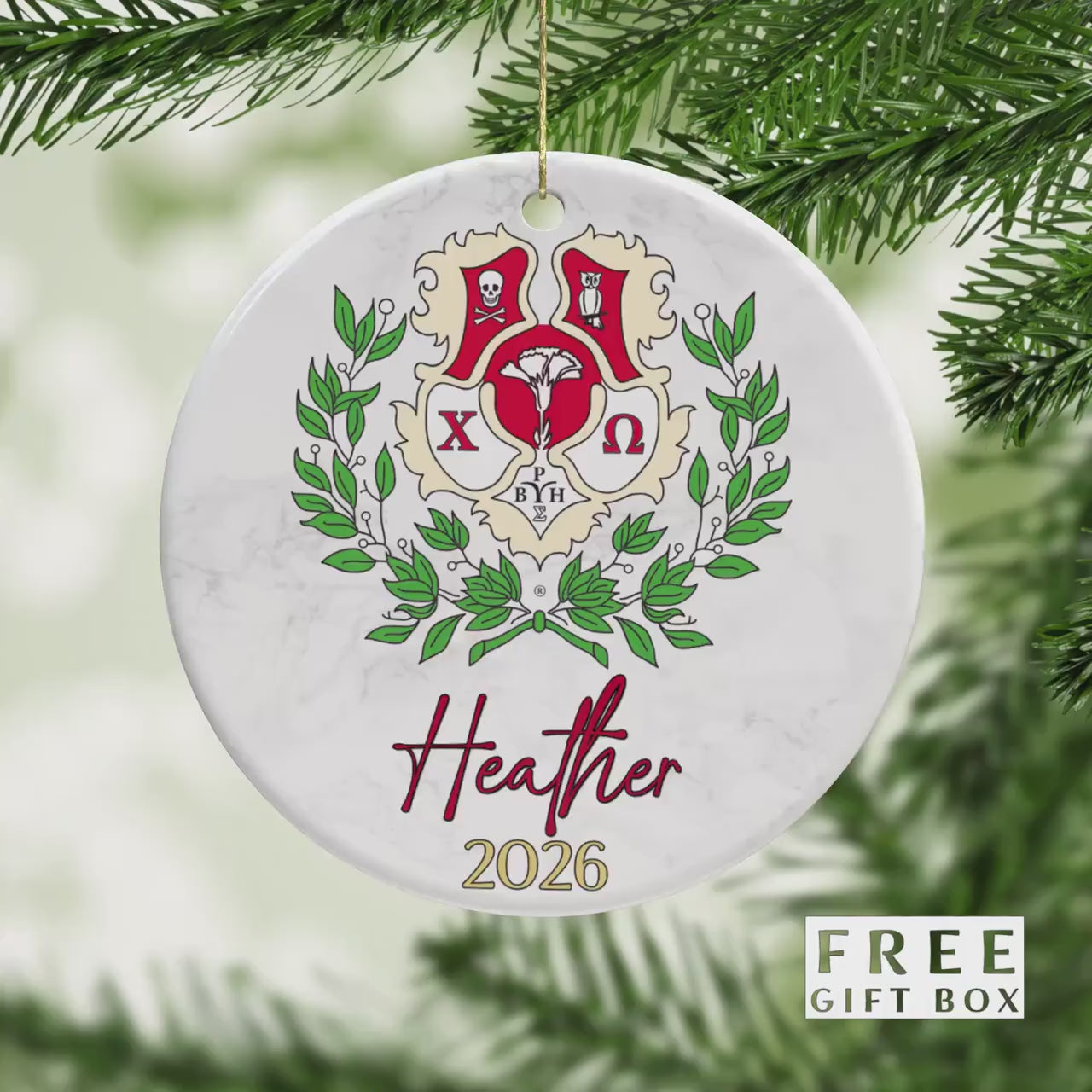 Chi Omega Sorority Ornament: Custom College Merch for Big Little Sorority Gifts