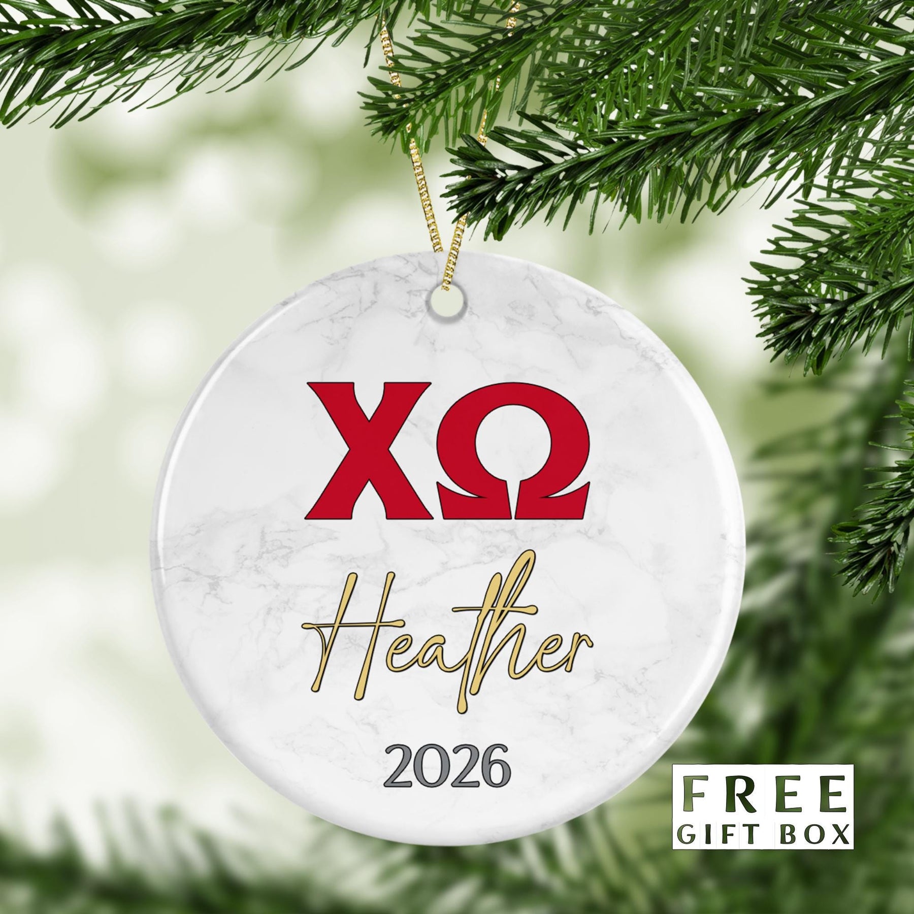 Chi Omega Sorority Ornament: Custom College Merch for Big Little Sorority Gifts