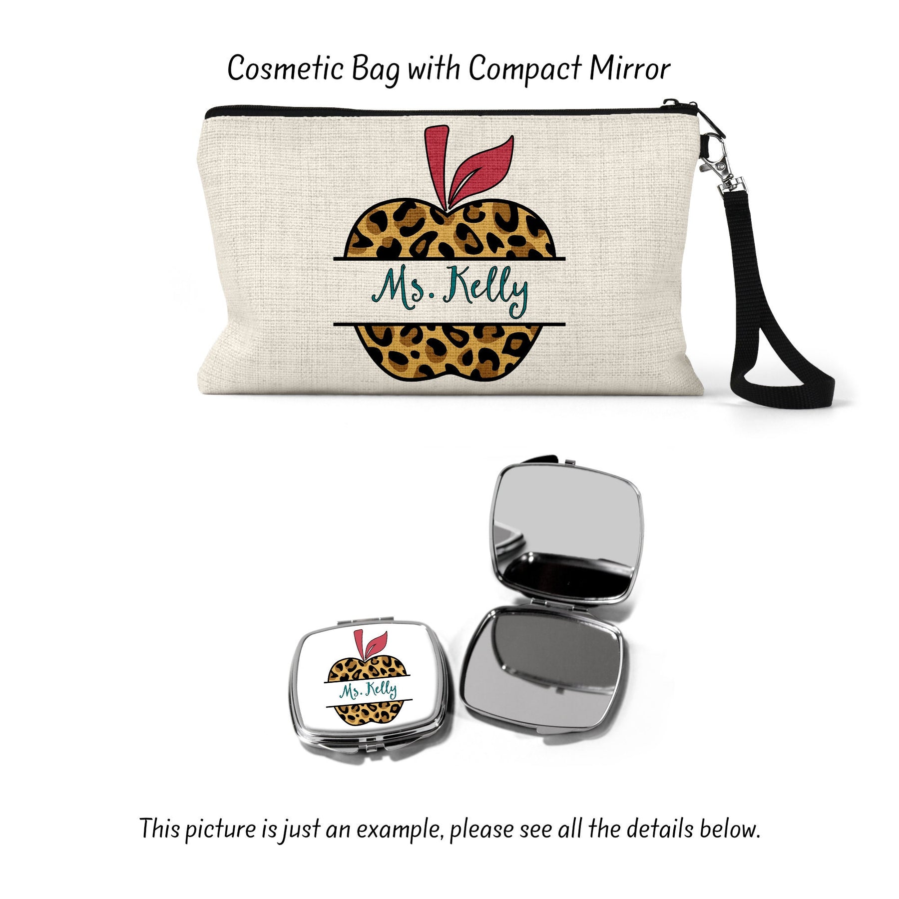 Show your teacher appreciation with this personalized cosmetic bag. Perfect as an end-of-year or teacher appreciation gift, this versatile bag functions as both a pencil pouch and makeup bag. Crafted with durable materials, it's a thoughtful, unique present to honor your favorite teacher's influence. Customizable with their name, this gift encapsulates a memorable school year and highlights the special bond with a treasured educator.