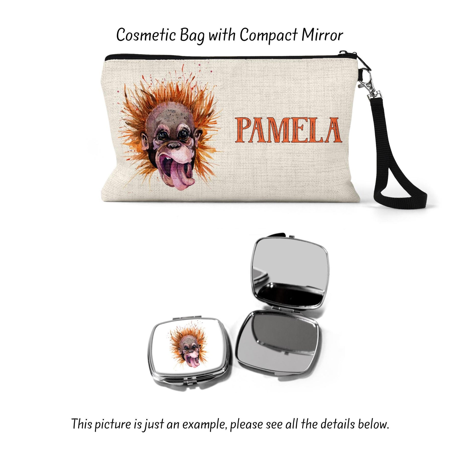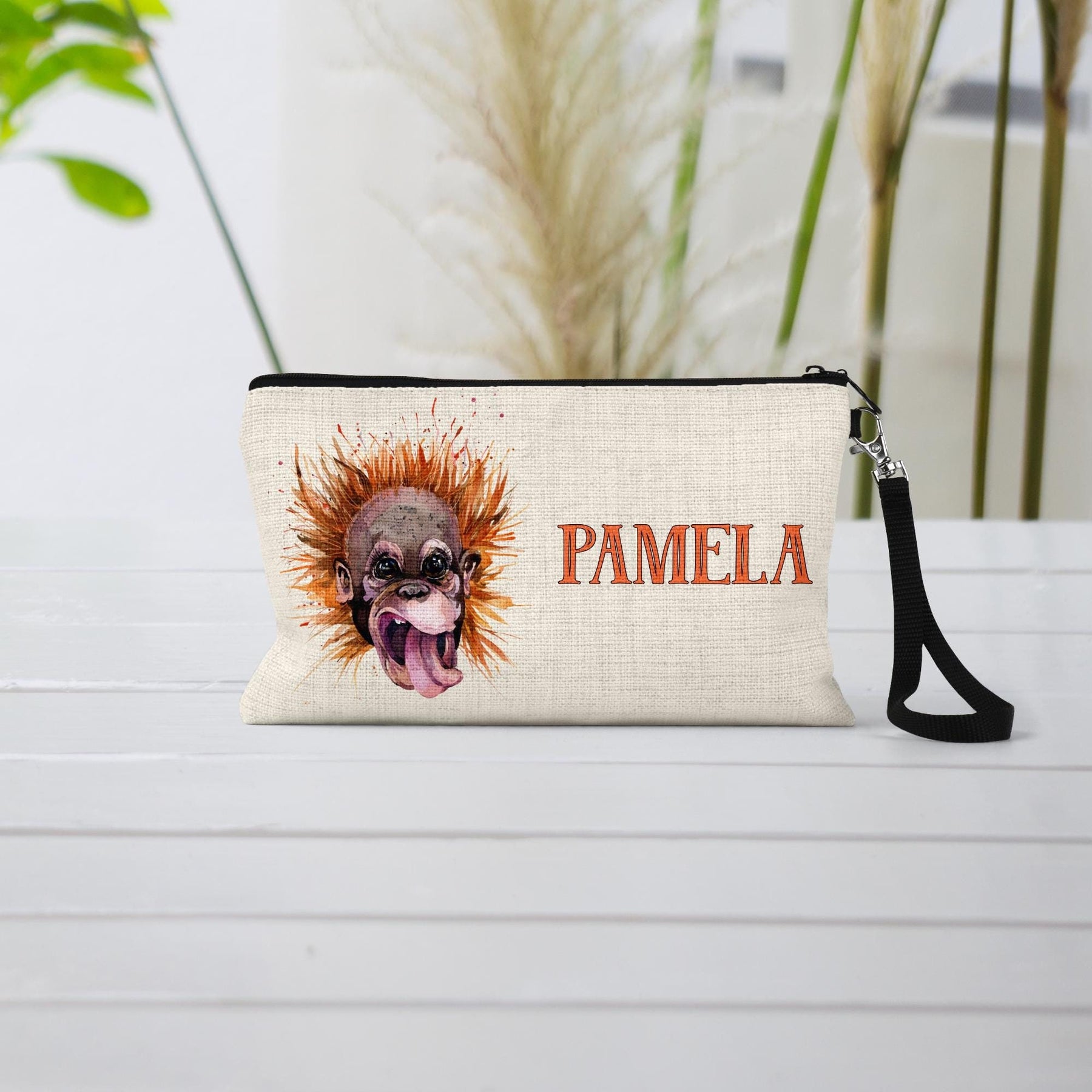 Surprise the monkey lover in your life with this fun custom makeup bag! Perfect as a wife gift, girlfriend gift, or best friend gift, this makeup bag showcases a playful monkey design. Ideal as a cosmetic bag, makeup organizer, or toiletry bag for women, this make up bag combines style and functionality. This charming monkey gift is sure to bring a smile to any recipient's face.