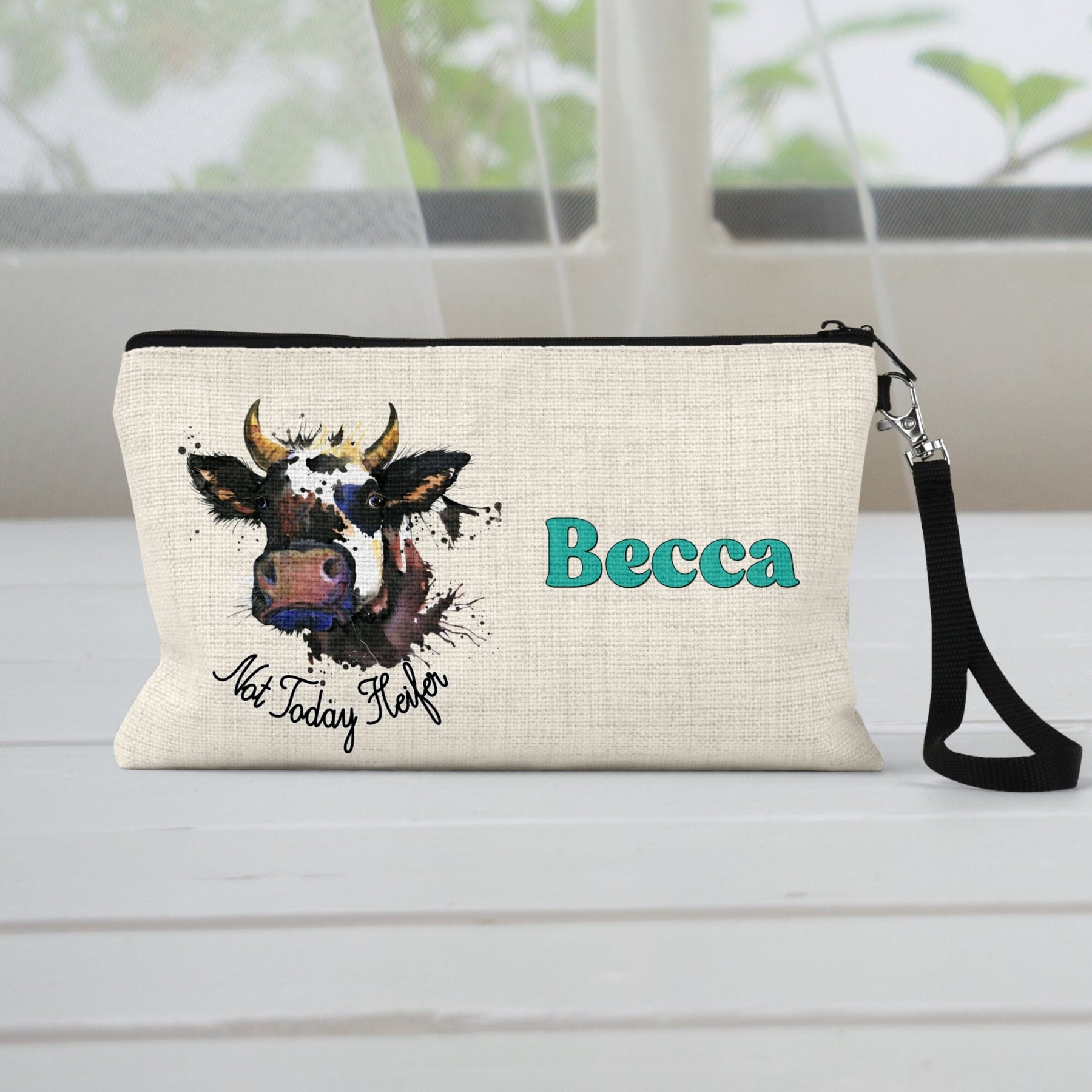 Personalized Cow Print Linen Makeup Bag: Cosmetic & Toiletry Bag