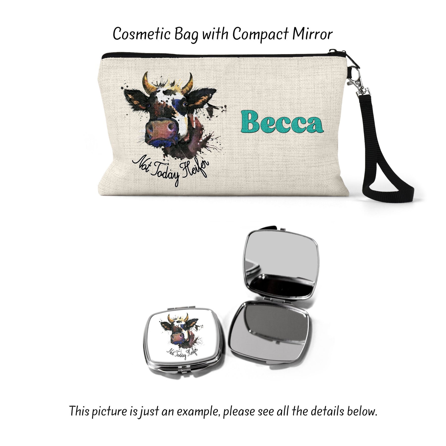 This custom makeup bag features a charming cow print, a perfect blend of fun and style. It's an ideal gift for bridesmaids, your wife, girlfriend, or best friend. With plenty of space to organize their favorite makeup essentials, this cosmetic bag doubles as a stylish toiletry bag for women on the go. It's not just a makeup organizer - it's a unique expression of individual style. Add a personal touch with our monogram option and create a truly unforgettable gift.