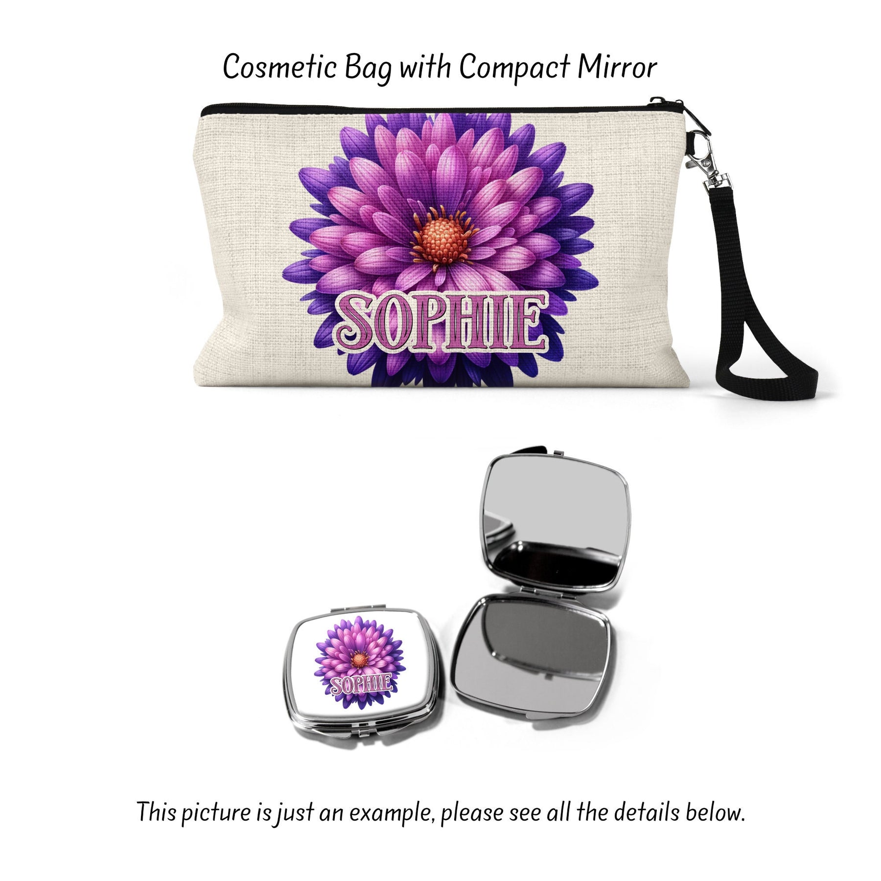 Celebrate September's birth flower with our elegant aster zipper pouch. This versatile bag is adorned with beautiful spring flowers, making it an ideal bridesmaid gift or birthday present. Use it as a makeup bag, cosmetic bag, travel bag, toiletry bag, pencil bag, or make up bag. This charming birth month flower pouch is perfect for organizing all your essentials in style.