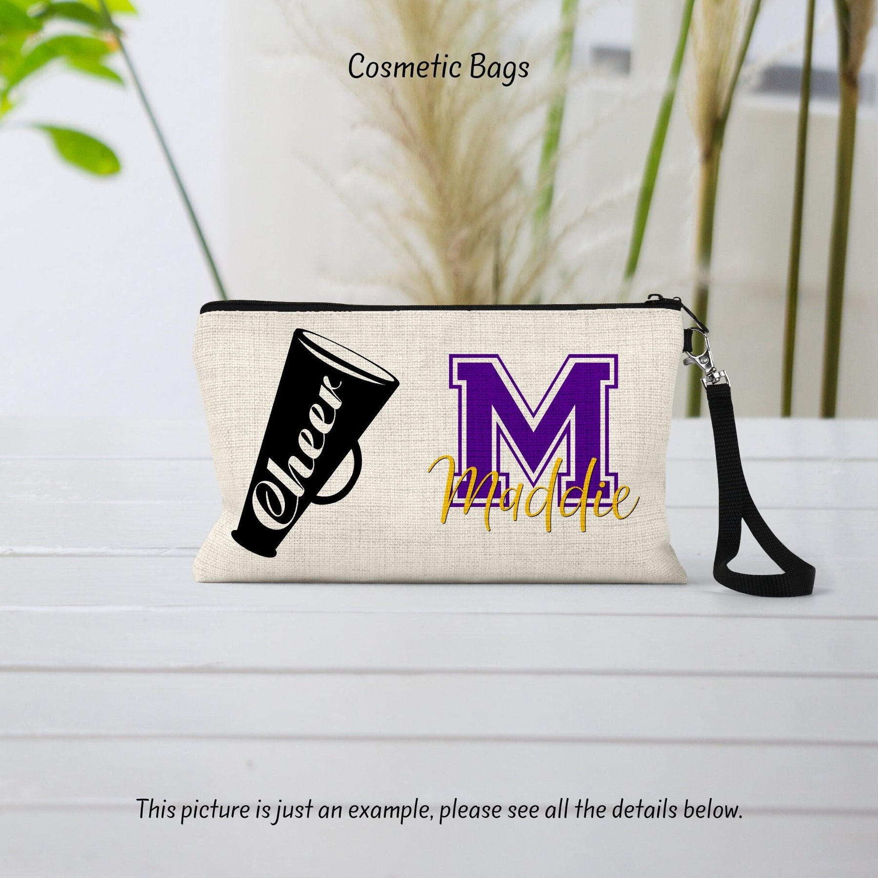 Personalized Cheerleader Cosmetic Bag: Cheer Gift, Linen Makeup Bag