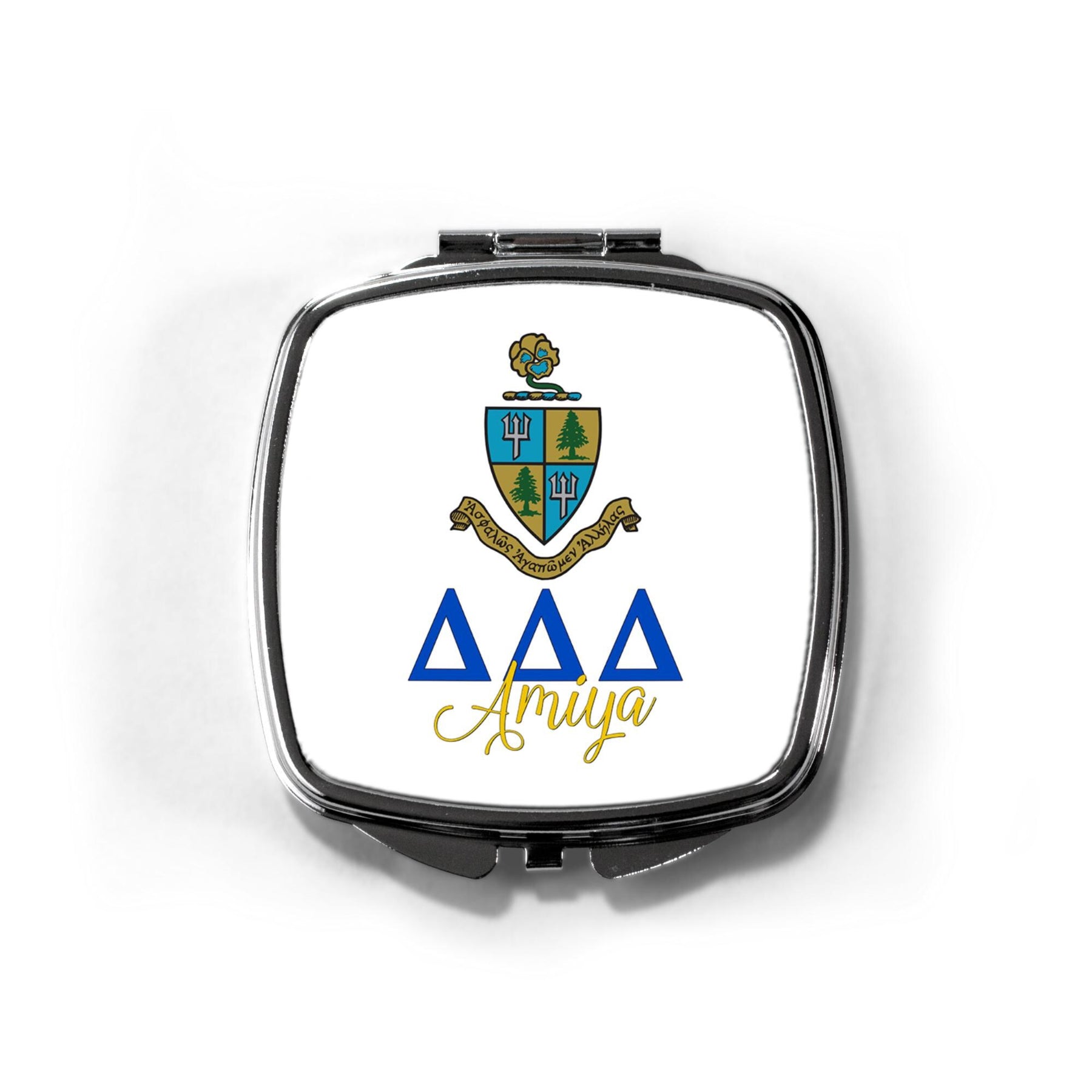 Enhance your sorority style with our Custom Tri Delta Pocket Mirror! This beautifully designed compact mirror features the iconic Greek letters of Delta Delta Delta, making it the perfect accessory for quick makeup touch-ups or checking your reflection on the go. It's a thoughtful sorority gift for both big and little sisters, and a must-have addition to your sorority merch collection. Embrace Greek life in style with this personalized mirror compact, proudly displaying your sorority letters. Stay picture-perfect with this Tri Delta makeup mirror, exclusively crafted for you!
