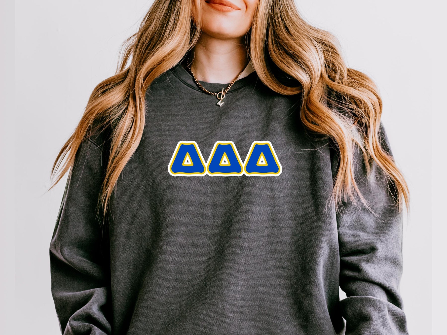Show off your Tri Delta, Delta Delta Delta pride with this stylish sorority sweatshirt! Perfect for Big Little reveal, this cozy college sweatshirt is a must-have for sorority apparel lovers. Featuring classic sorority letters, it makes a great sorority gift for any member. Whether you're looking for Greek gifts, Big Little sweatshirts, or trendy sorority merch, this custom sorority piece is the perfect addition to your wardrobe. Grab one today for yourself or surprise your Big or Little with a thoughtful gift!