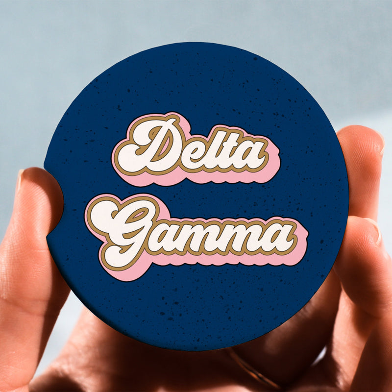 ["Big Little Sorority","Car Coasters","Car Decor","Coasters","Custom Sorority","Cute Car Accessories","Delta Gamma","Greek Gifts","Sorority","Sorority Gift","Sorority Gifts","Sorority Letters","Sorority Merch"]