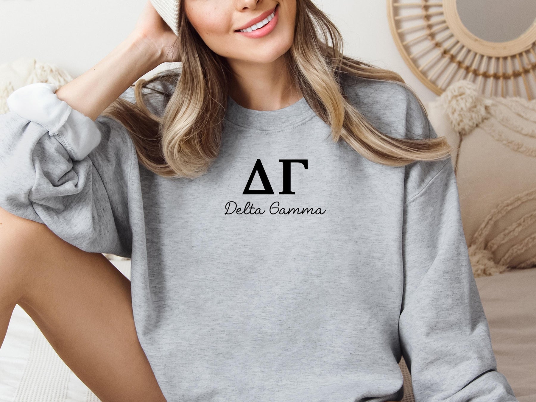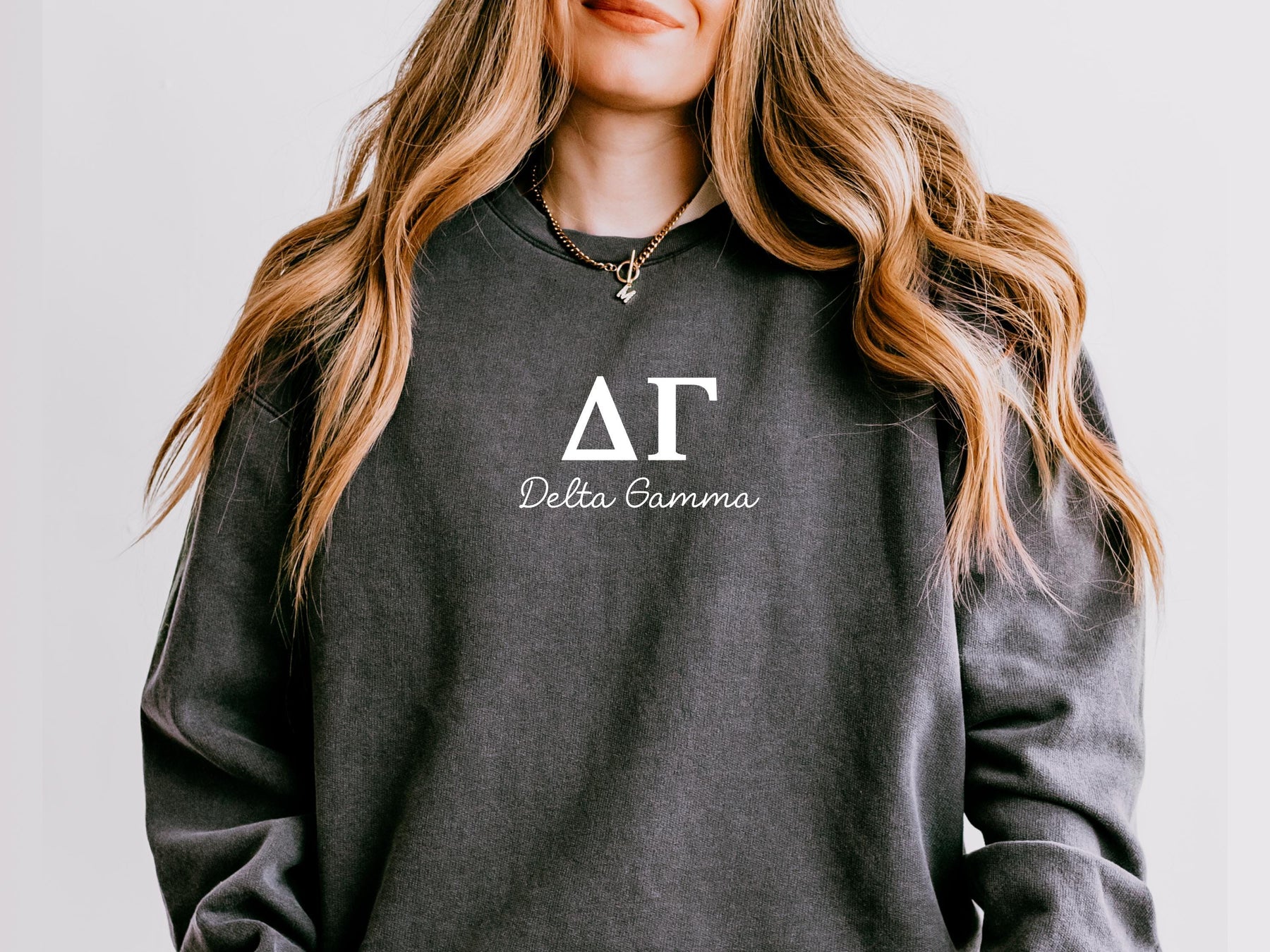 Show off your Delta Gamma pride with this stylish sorority sweatshirt! Perfect for Big Little reveal, this cozy college sweatshirt is a must-have for sorority apparel lovers. Featuring classic sorority letters, it makes a great sorority gift for any member. Whether you're looking for Greek gifts, Big Little sweatshirts, or trendy sorority merch, this custom sorority piece is the perfect addition to your wardrobe. Grab one today for yourself or surprise your Big or Little with a thoughtful gift!