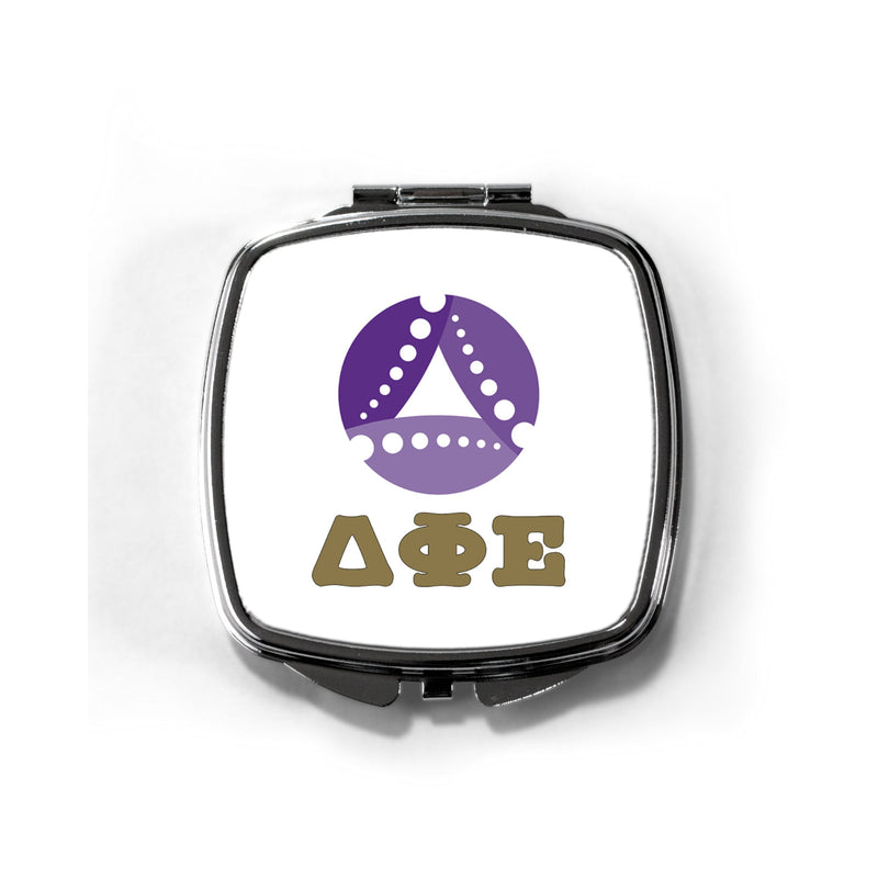 Enhance your sorority style with our Custom Delta Phi Epsilon Pocket Mirror! This beautifully designed compact mirror features the iconic Greek letters of Delta Phi Epsilon, making it the perfect accessory for quick makeup touch-ups or checking your reflection on the go. It's a thoughtful sorority gift for both big and little sisters, and a must-have addition to your sorority merch collection. Embrace Greek life in style with this personalized mirror compact, proudly displaying your sorority letters. Stay picture-perfect with this Delta Phi Epsilon makeup mirror, exclusively crafted for you!