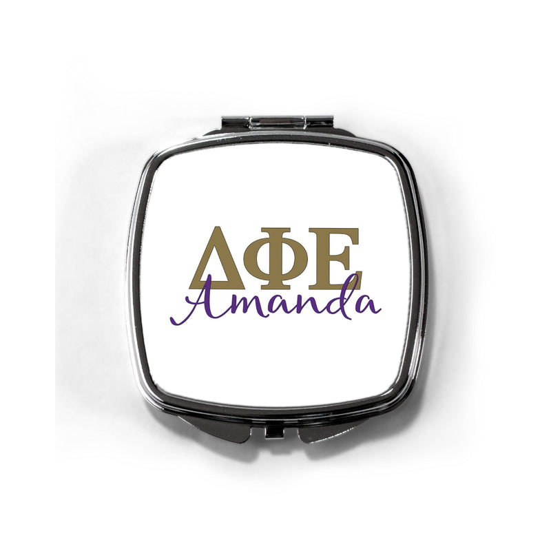 Delta Phi Epsilon Sorority Pocket Mirror - Greek Letters Custom Makeup Compact