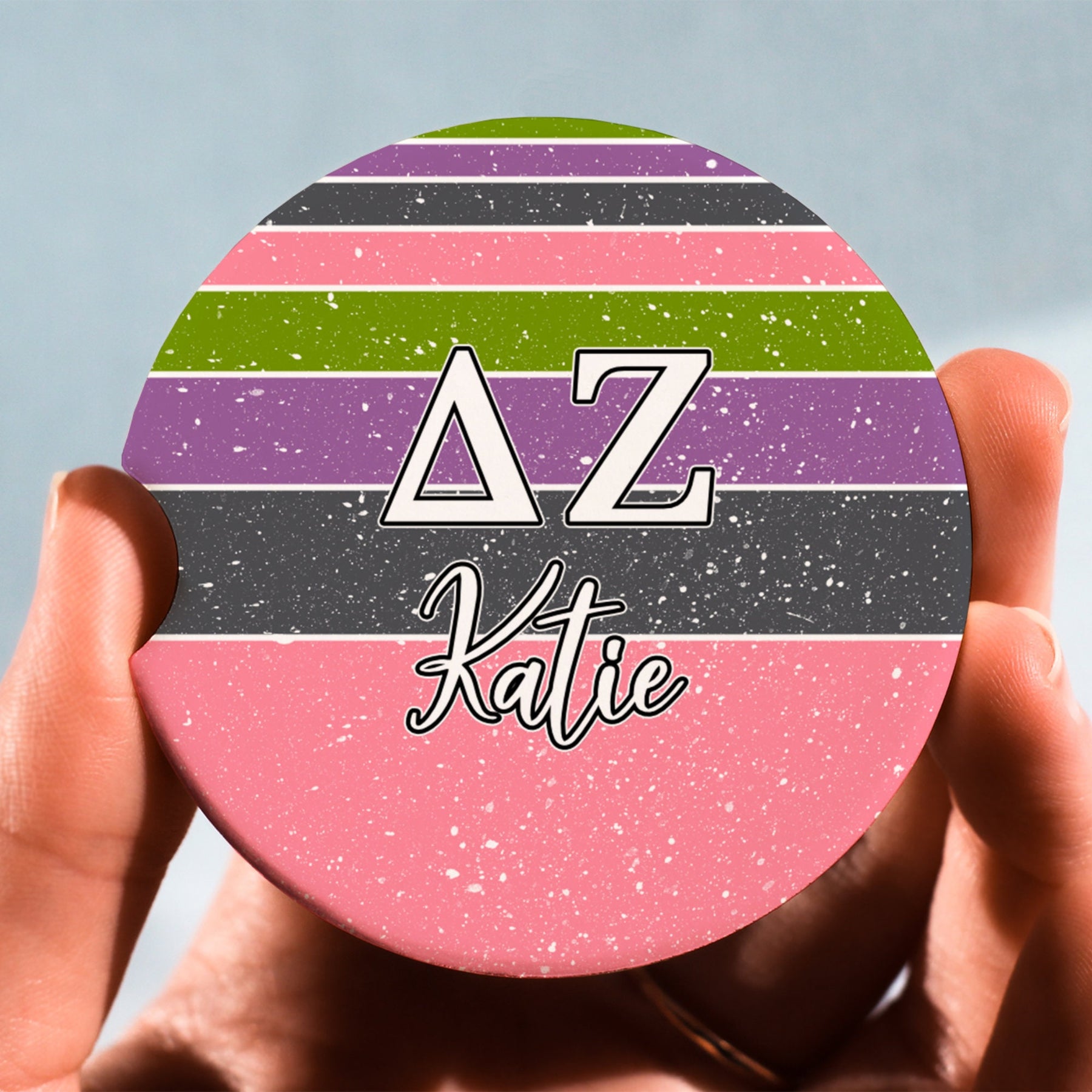 Delta Zeta Car Coasters - Sorority Letters Merch, Perfect Big Little Custom Sorority Gift