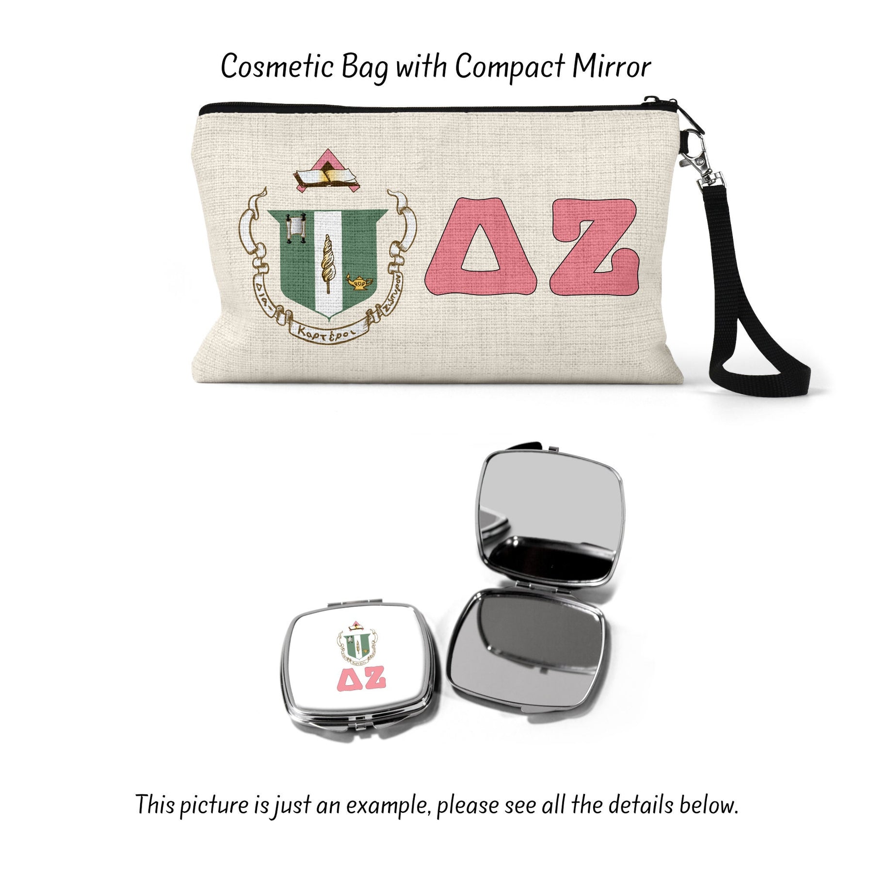 ["Big Little Sorority","Cosmetic Bag","Custom Makeup Bag","Custom Sorority","Delta Zeta","Greek Gifts","Make Up Bag","Makeup Bag","Sorority","Sorority Gift","Sorority Gifts","Sorority Letters","Sorority Merch"]