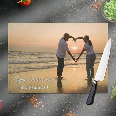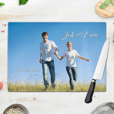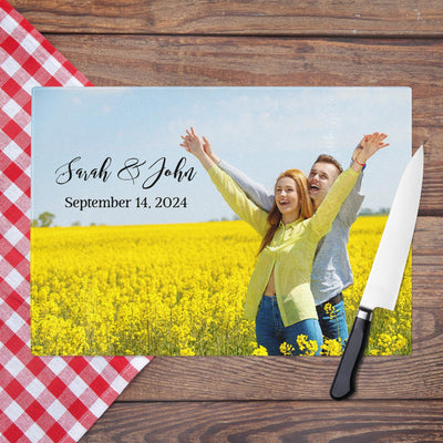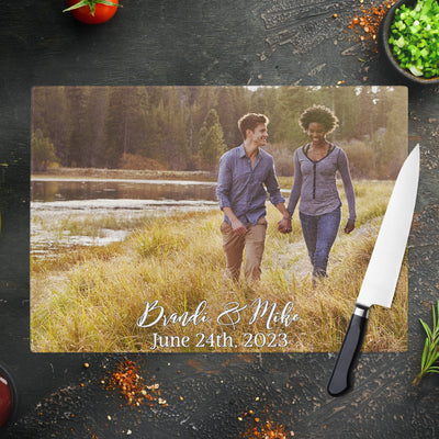 Personalized Photo Glass Cutting Board - Custom Kitchen Decor & Couple Gift