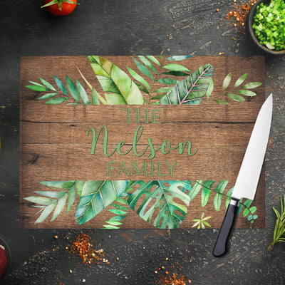 Custom Glass Cutting Board: Personalized Family Name Gift