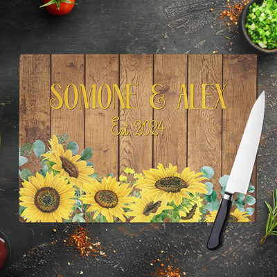 Sunflower Glass Cutting Board: Personalized Newlywed Gift