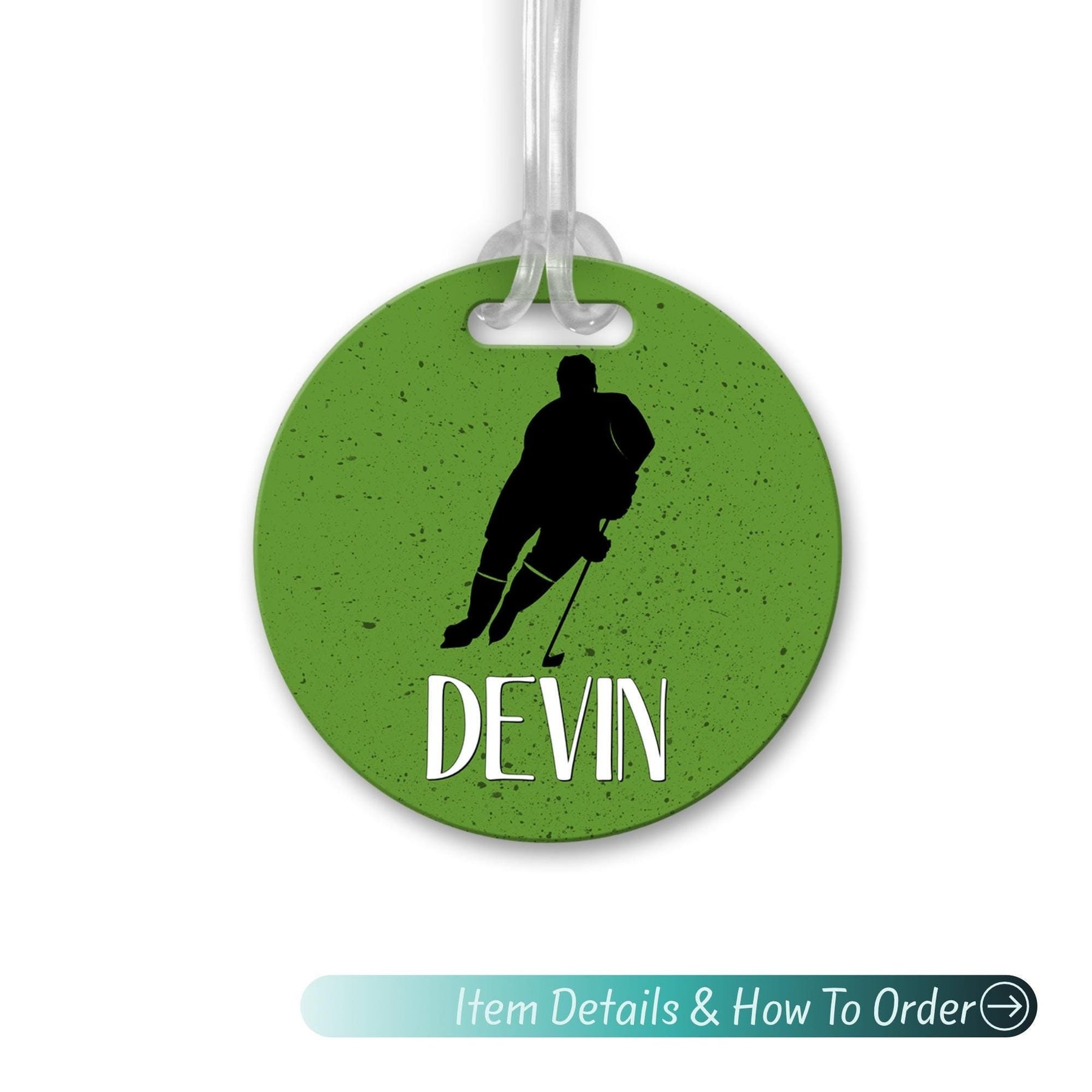 Elevate your hockey gear with this custom hockey bag tag! Ideal for hockey players, coaches, and teams, it makes a thoughtful hockey gift or coach gift. Attach it to your hockey bags or use it as a luggage tag. Personalized for that special touch, it's perfect for team gifts or as a coach bag accessory. Give the ultimate hockey coach gift that combines style and functionality with this custom luggage tag.