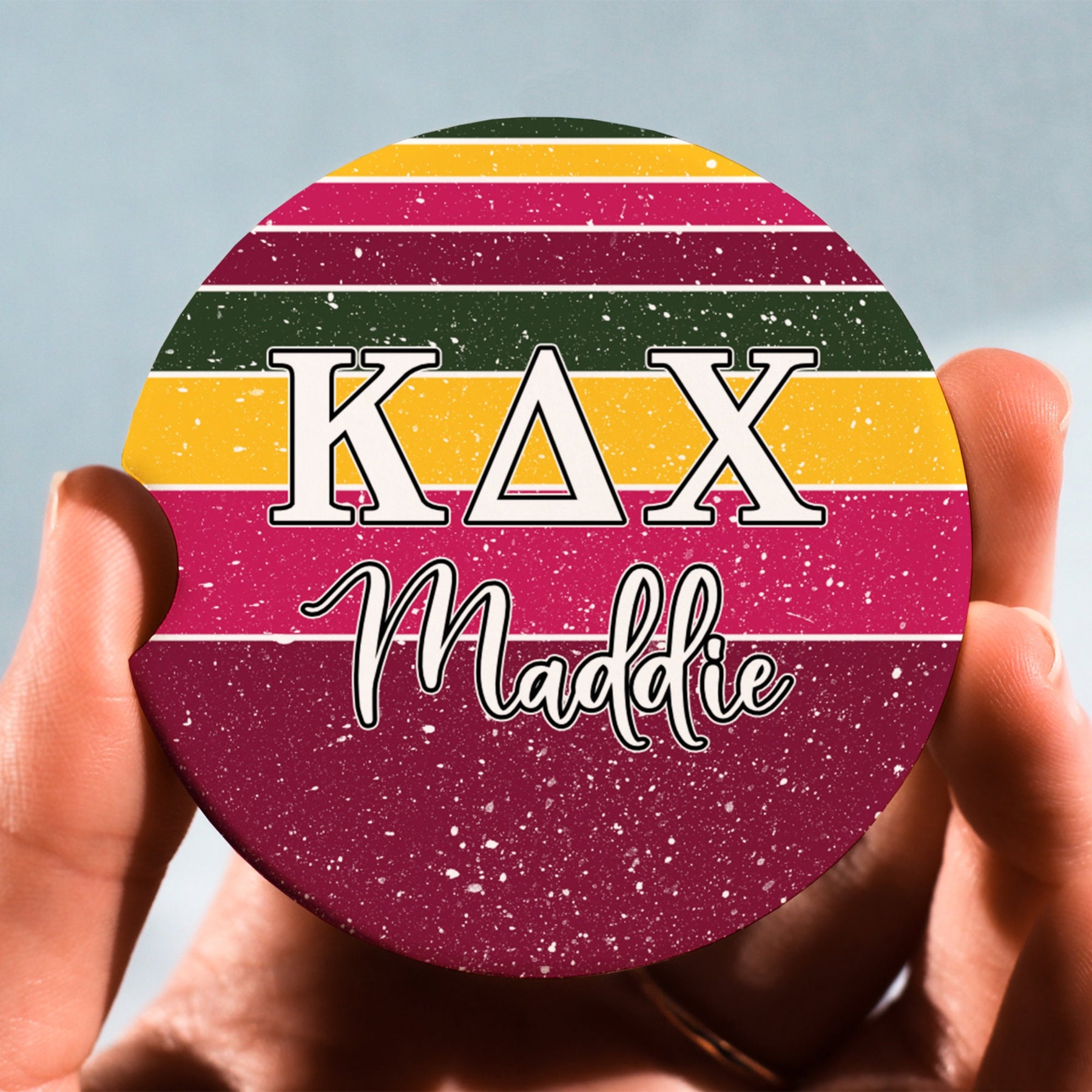 ["Big Little Sorority","Car Coasters","Car Decor","Coasters","Custom Sorority","Cute Car Accessories","Greek Gifts","Kappa Delta Chi","Sorority","Sorority Gift","Sorority Gifts","Sorority Letters","Sorority Merch"]