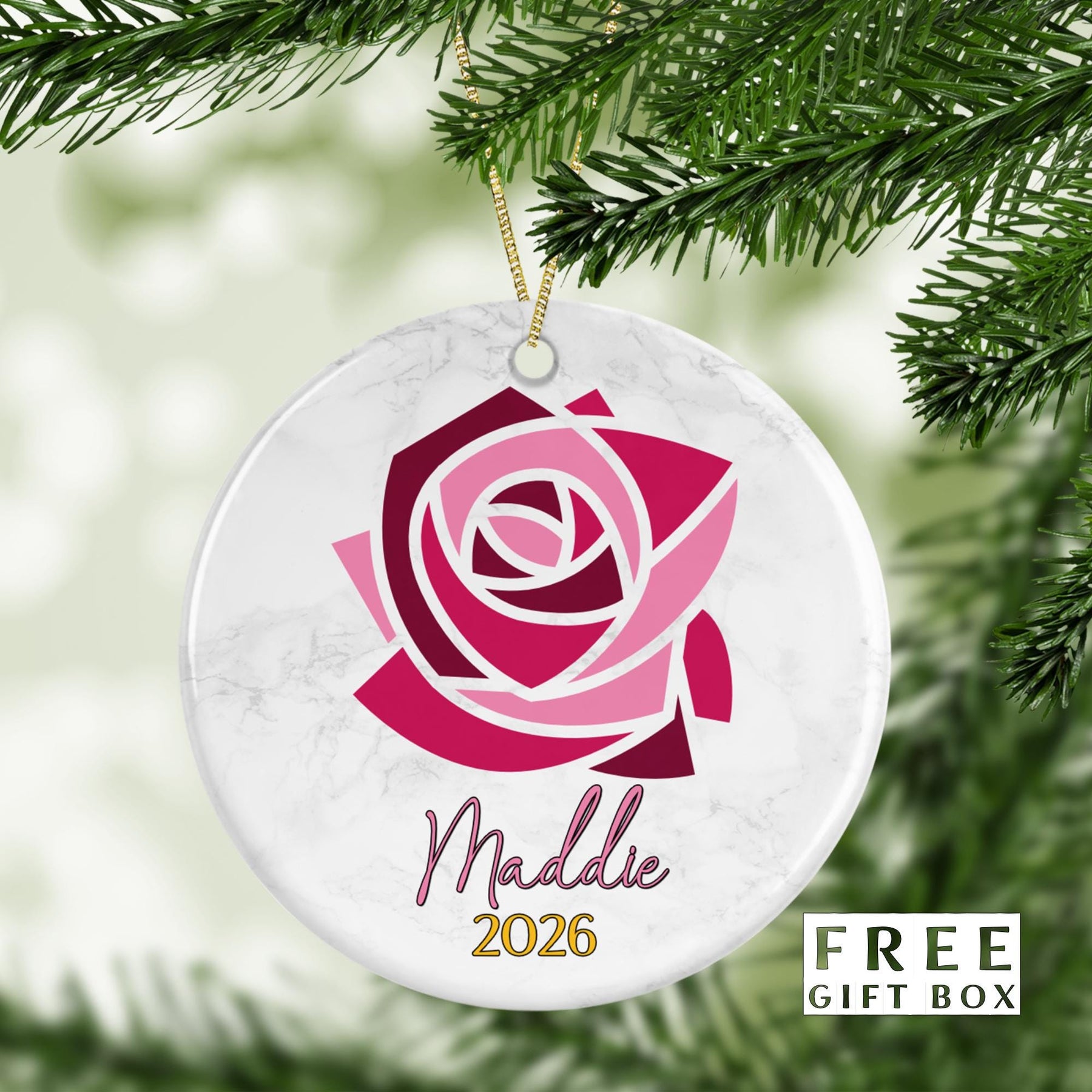 Discover our elegant 3" Round Porcelain Ornament. Crafted with care, it features a unique image on one side with a vibrant gloss finish. This ornament shines beautifully, reflecting light off its surface. It includes a luxurious gold string for easy hanging and a charming gift box, making it a perfect present. This isn't just a decoration, it's a piece of art to elevate your home decor.