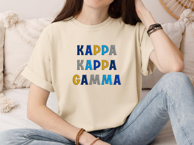 Show off your Kappa Kappa Gamma pride with this stylish sorority shirt! Perfect for Big Little reveal, this cozy college shirt is a must-have for sorority apparel lovers. Featuring classic sorority letters, it makes a great sorority gift for any member. Whether you're looking for Greek gifts, Big Little shirts, or trendy sorority merch, this custom sorority piece is the perfect addition to your wardrobe. Grab one today for yourself or surprise your Big or Little with a thoughtful gift!