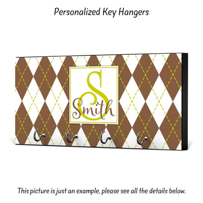 Personalized Key Holder for Wall: MDF Wood with Silver Hooks