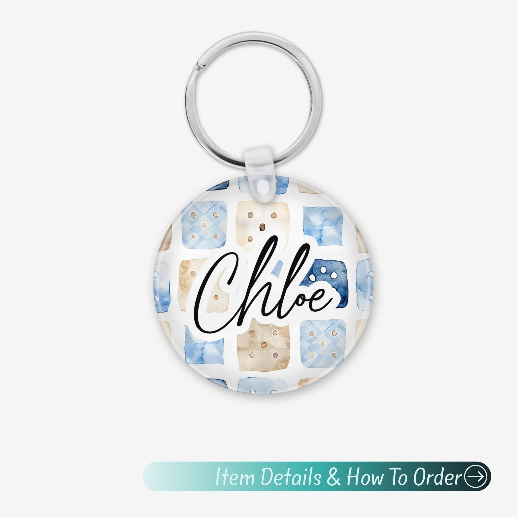 Add a personal touch with this custom keychain, perfect as a cute keychain, purse charm, or bag charm! Made from durable acrylic in a shabby chic style, this name keychain doubles as a name tag or luggage tag. Ideal for a bridesmaid proposal or thoughtful gift, each custom name keychain is uniquely yours. A stylish key chain for any bag or set of keys!
