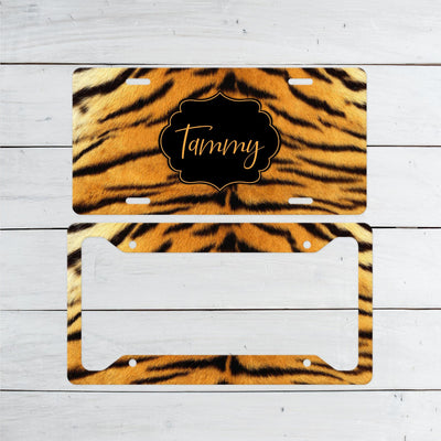 Tiger Print Aluminum License Plate Frame: Personalized Car Decor