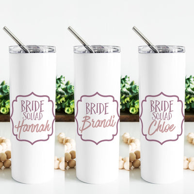 Personalized Bridesmaid Tumbler: Bride Squad Bachelorette Party Gift