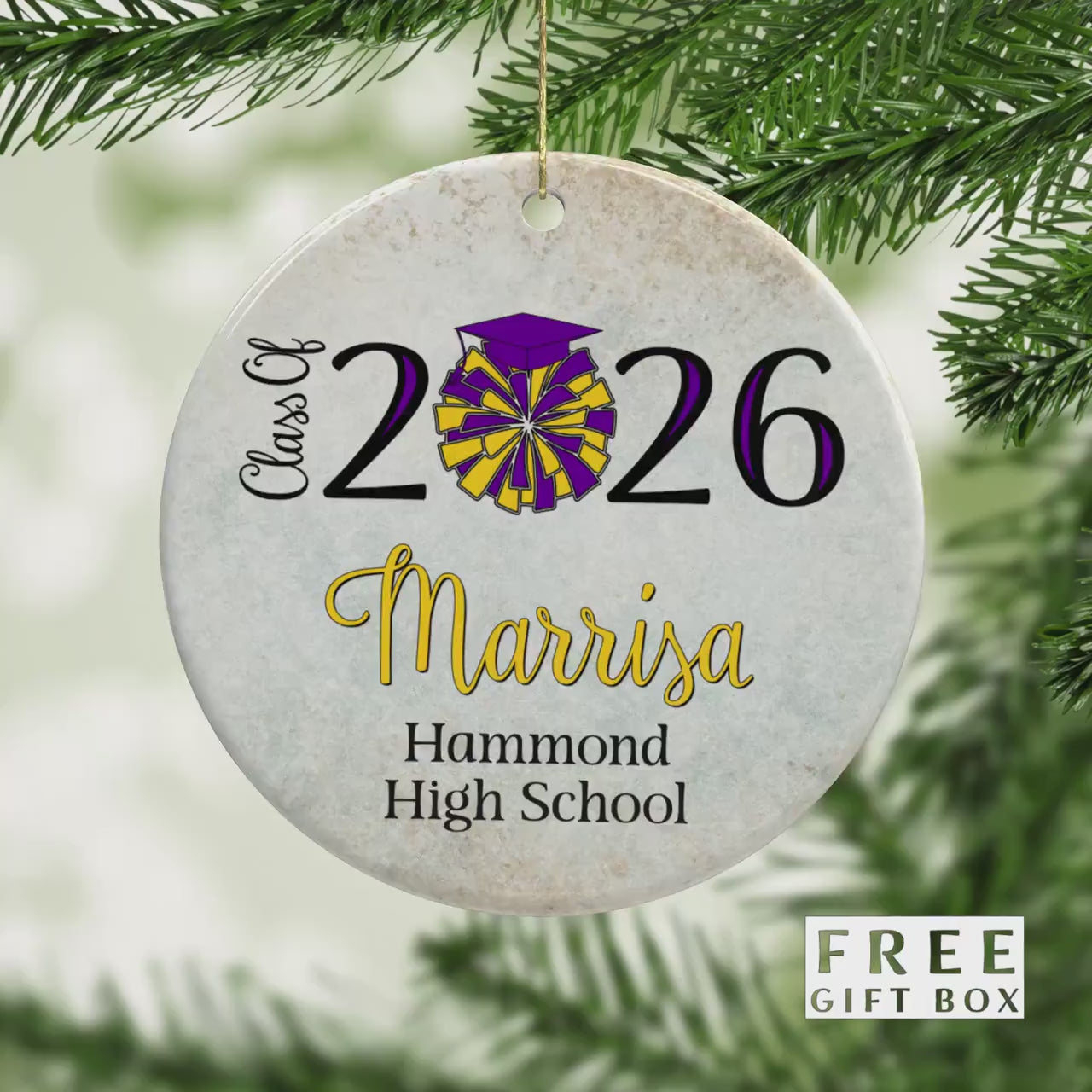 Honor your cheerleader with our unique Christmas Ornaments. Ideal as a graduation gift, this personalized Cheer Ornament embodies the energy and joy of cheerleading. A standout in our Cheerleader Gifts collection, it doubles as a treasured keepsake. Also, an excellent cheer coach gift, this ornament adds a personal touch to your holiday celebrations while acknowledging their dedication and support.