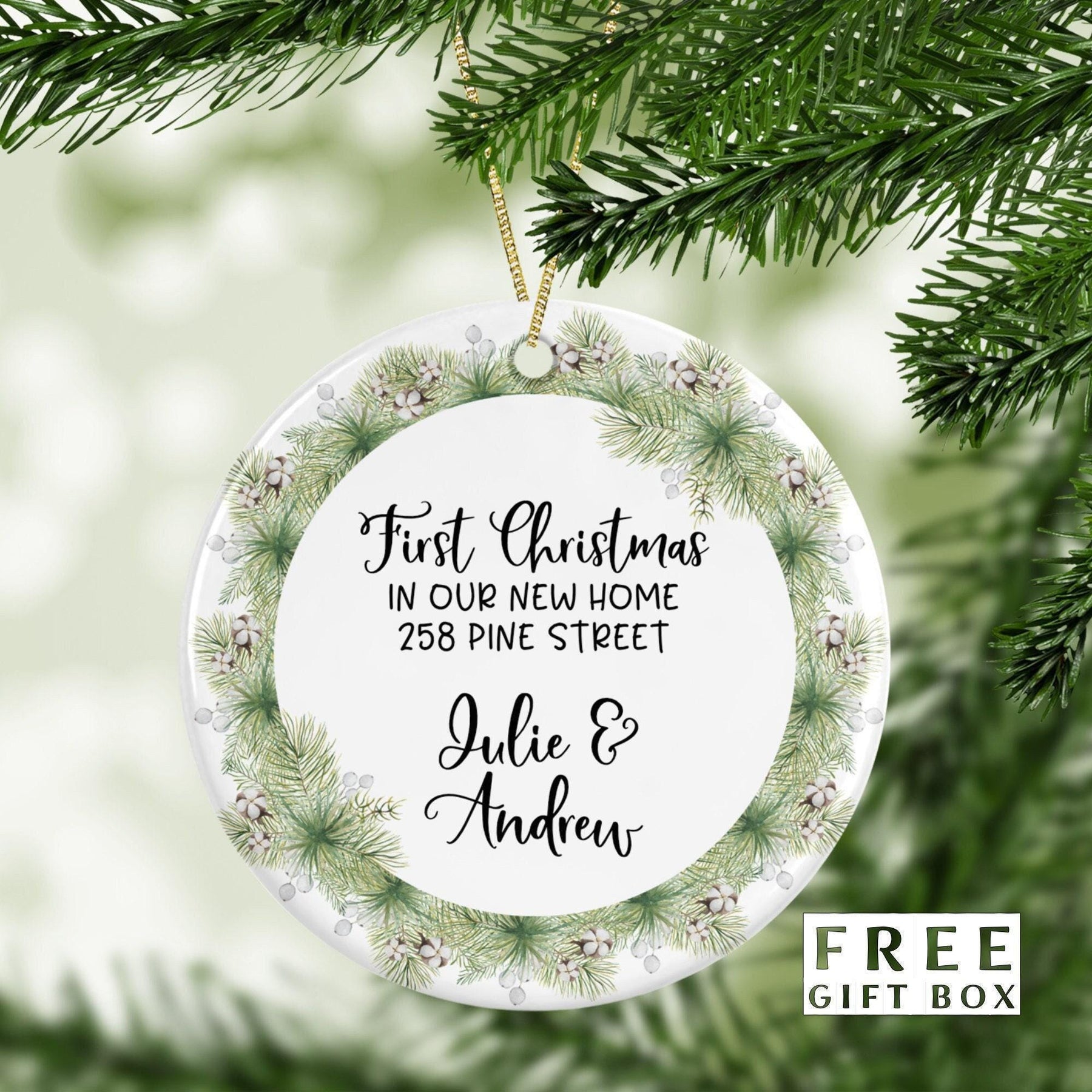 Cherish your First Christmas with our Just Married Custom Ornament. Perfect for newlyweds or those just engaged, this Couples Ornament is a unique way to commemorate your love story. Personalized for your special journey, this ornament serves as a Wedding Keepsake that enriches your holiday decor and keeps the magic of your first Christmas alive. Order today for a heartwarming Custom Wedding Gift that lasts a lifetime.