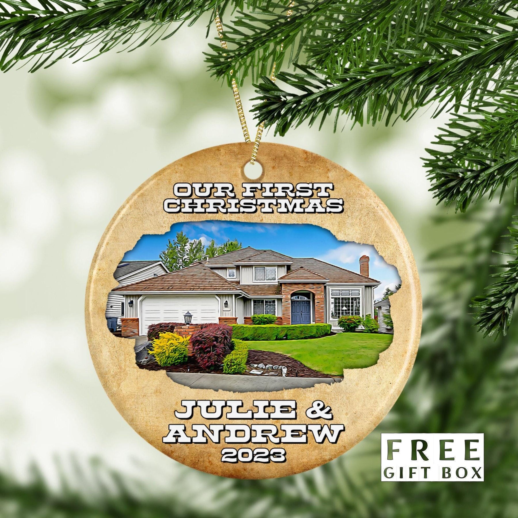 Celebrate the beginning of a new chapter with our Personalized Watercolor House Ornament – the perfect New Home and Housewarming Gift! This exquisite Family Tree Ornament features a beautiful House Portrait, capturing the essence of "Home Sweet Home." Customize it with your own photo to make it a cherished First Home Ornament. Whether it's for your own New House or as a heartfelt Housewarming Gift, this House Ornament will add a touch of warmth and nostalgia to any space. Shop now and commemorate "Our First Home" with this lovely Photo Ornament.
