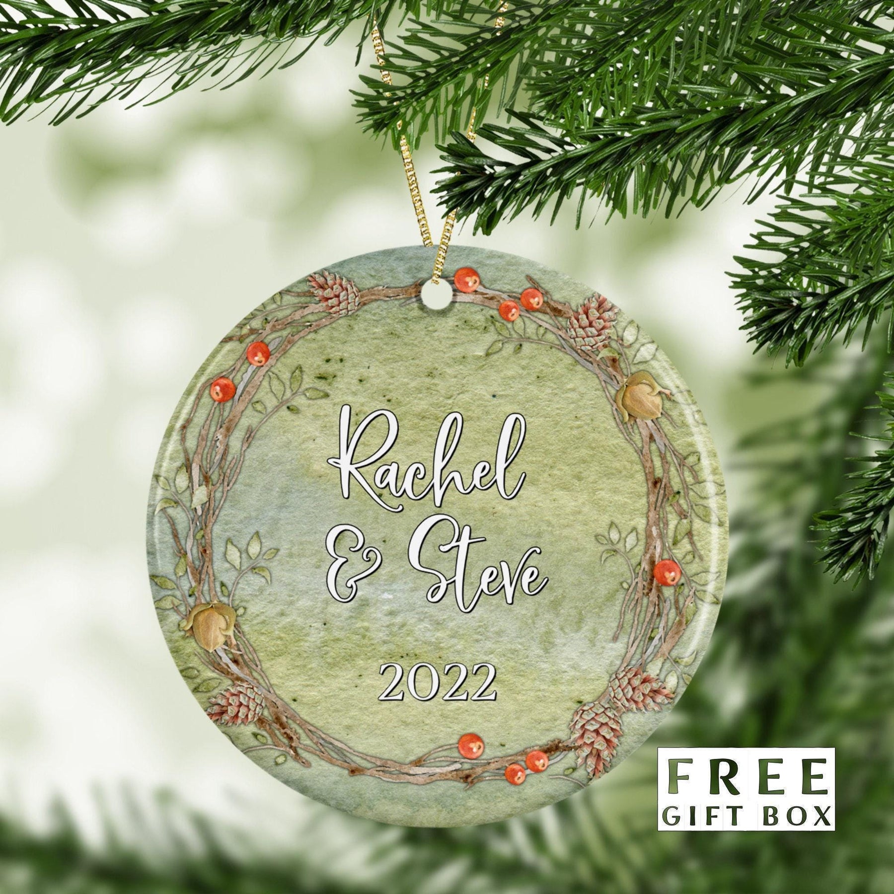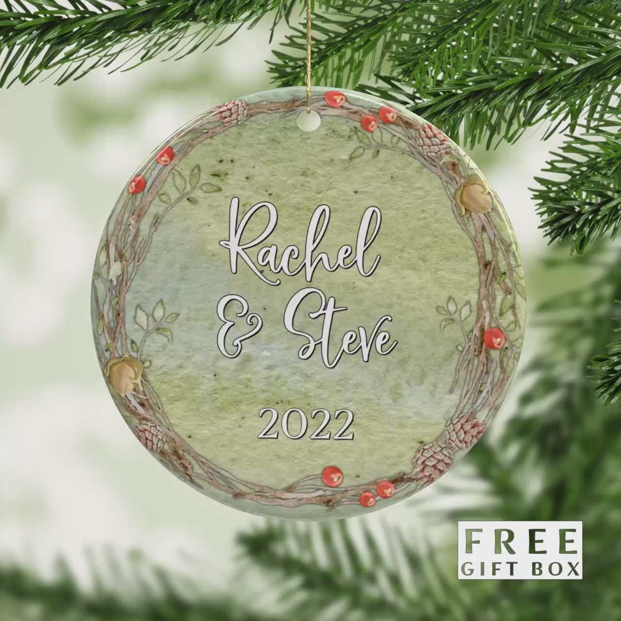 Celebrate your first Christmas together with our personalized keepsake. This custom holiday ornament is a perfect engagement or wedding keepsake, capturing the joy of your new journey. Add your names and important dates to make it uniquely yours. Ideal as a newlywed or couple's gift, this ornament will bring a special touch to your holiday season. Make your first festive season unforgettable with our custom wedding ornament.