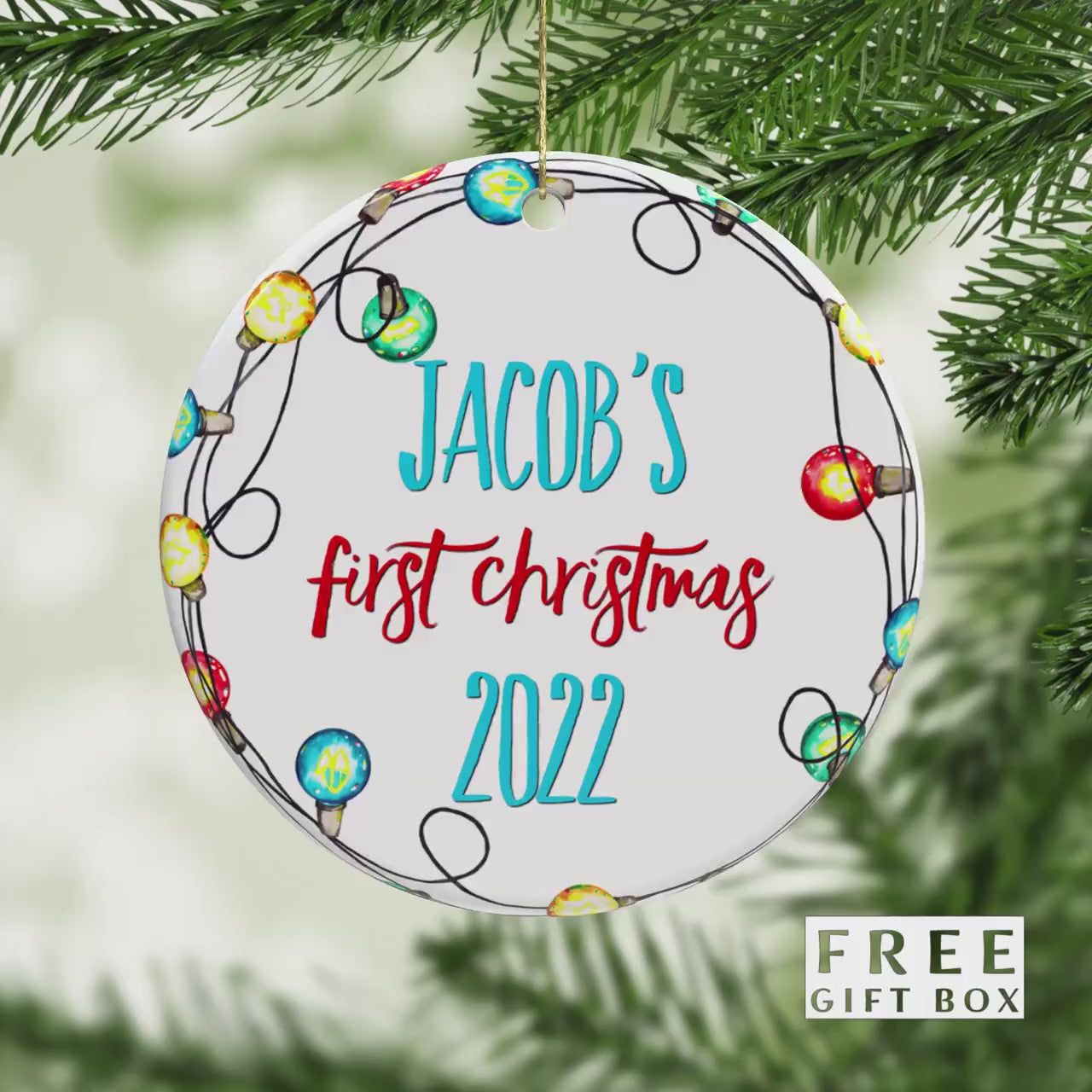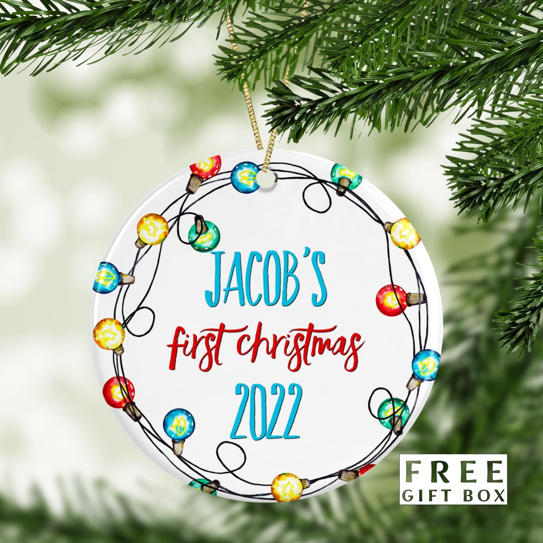 Celebrate 'Our First Christmas' with our Personalized Baby Ornament, an unforgettable new baby gift! This custom baby gift doubles as a darling stocking stuffer, bringing joy to your Christmas tree. It's a perfect keepsake to mark your baby's first ornament. The birth announcement detail adds an extra touch of sentimentality. Ideal as a newborn gift, this custom ornament will be a cherished reminder of your baby's first Christmas.