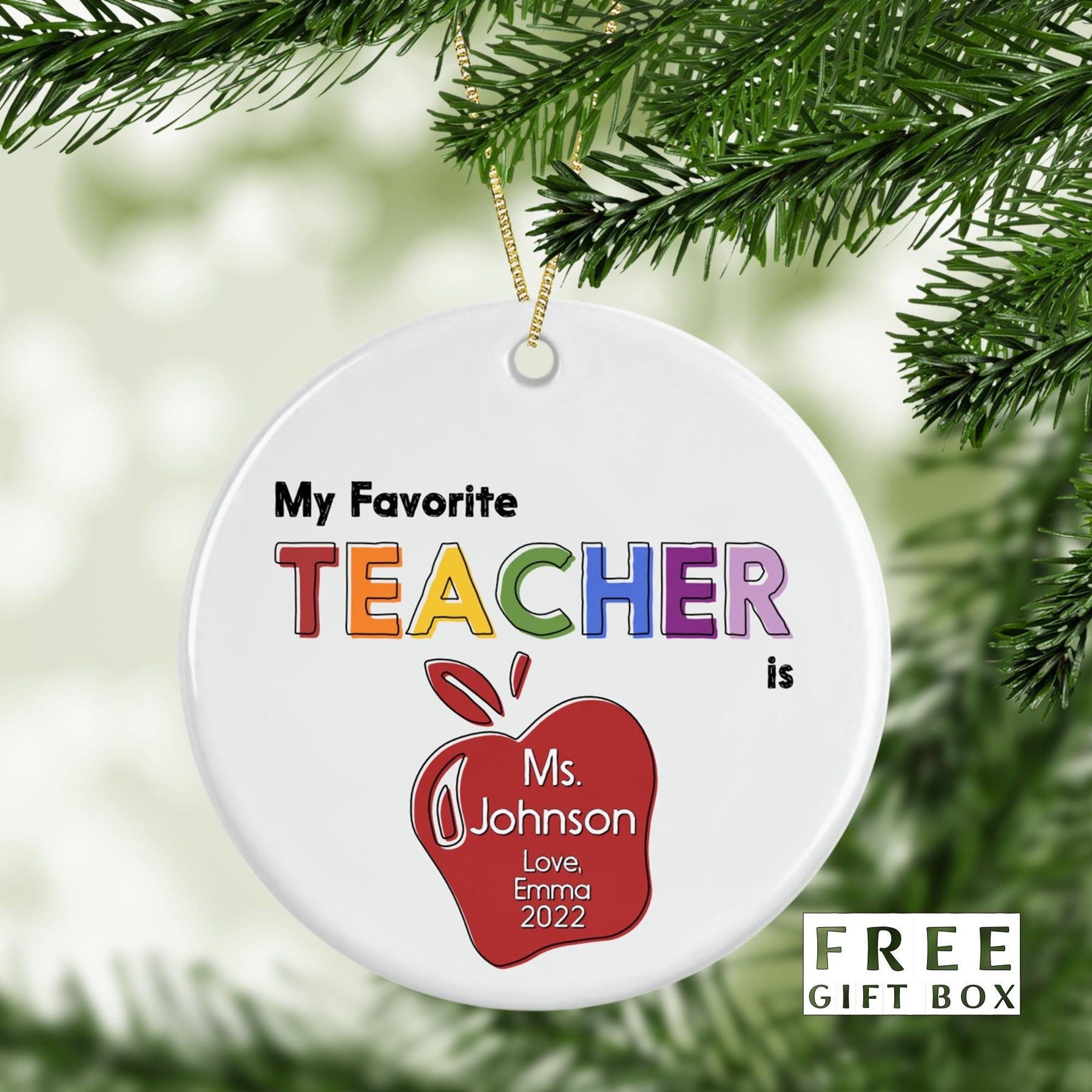 Looking for a unique new job gift or a thank you token for your preschool teacher? Celebrate your appreciation with our Personalized Teacher Ornament. Perfect as a new teacher gift, teacher retirement gift, or even as bulk teacher gifts. This thoughtful, handcrafted decoration is a beautiful 'Thinking of You' gift, expressing gratitude and recognition in the most meaningful way. Ideal for all teachers, it adds a heartwarming touch to any occasion. Show them they're valued - order yours today.